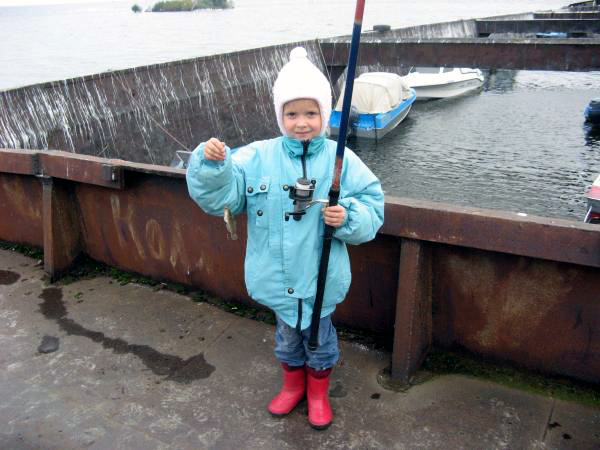 Ребёнок весь в родителей (или родители в неё), весь день тянет на рыбалку и ловит там, где люди-то и неловят.