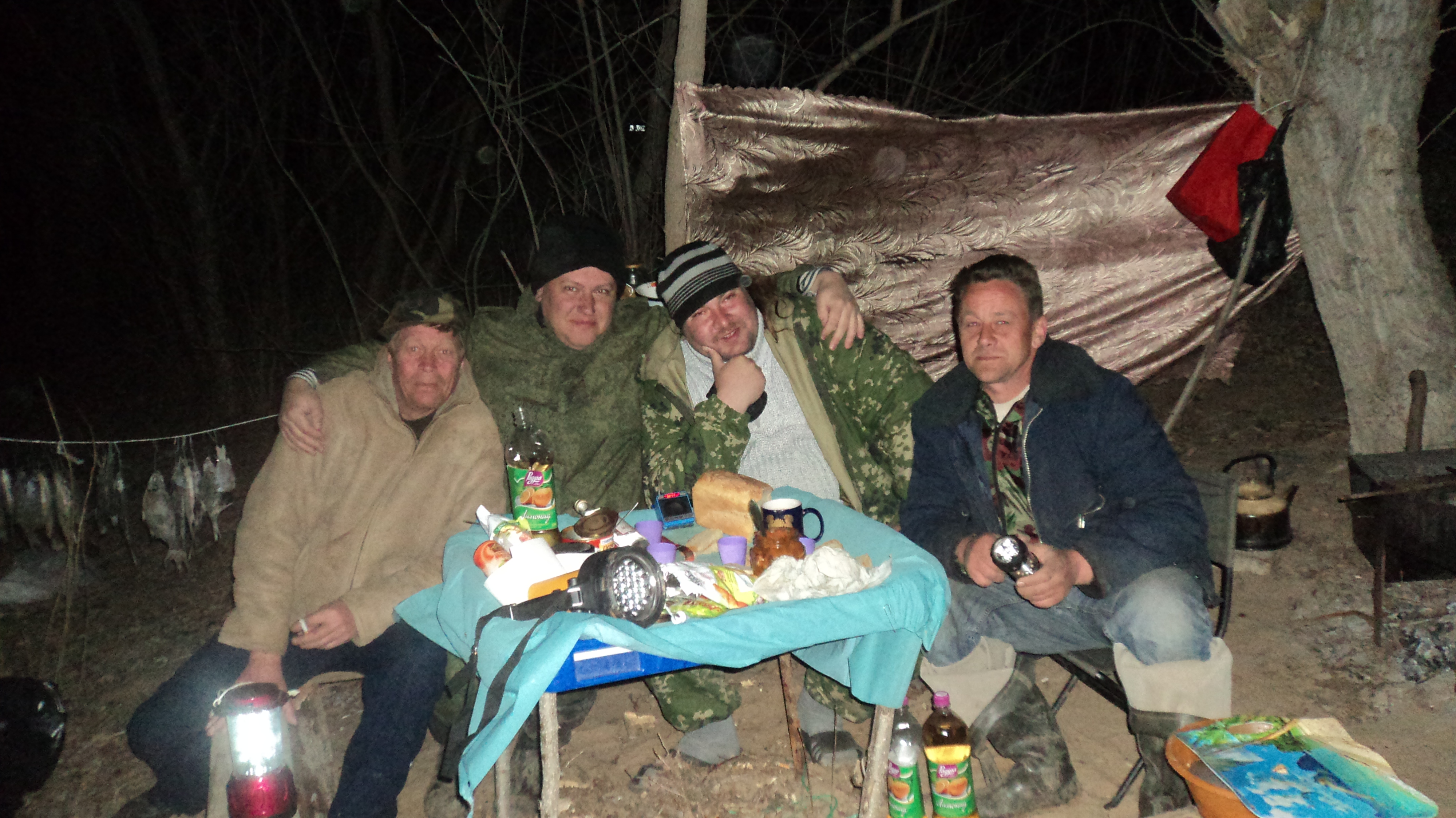 ну собственно по приезду в Харабали охренели!!!на платформе снег,с неба снег,и Олег(который встретить должен был)не отвечает)))но правда приехал егерь Серёжка.дорога ужас,проехать ток на уазе или тракторе можно...размещаемся в столовой,открываем шампанское за приезд и ждём заселения под сало с яишенкой и помидорками!!!скажу сразу что первые 3 дня просто пили ибо погоды не было совсем!!!!но потом потихоньку погода наладилась и начался клёв.ребята с базы сома на 87 кг поймали,говорят тролили а там кто их знает!!!!сходили на уху и Беней и Фунтиком....тоже весело)))потом на вечернюю рыбалку.ну а дальше обычная рыбалка,углублятся не буду...ловили хорошо,клёв отменный!!!кстати место дома решил поменятся местами с димкой и жил в доме на колёсах.по соседству с базой стояли знакомые мужики с Подольска с палатками,с их слов днЯ за 2 до нашего приезда клевало отменно на ямах густера,верим ибо предьявляют полусухую в сушилке)))!!!очень понравилось!!!оценка базе твёрдая 4!!!ну как то так если в 2-ух словах!!!еслиб не билеты на 18-е на поезд то думаю дня на 3 задержались бы.в августе наверное поедем на ПЩВ,ДАВНЕНЬКО НЕ БЫЛ У ОЛЕГА В ГОСТЯХ.