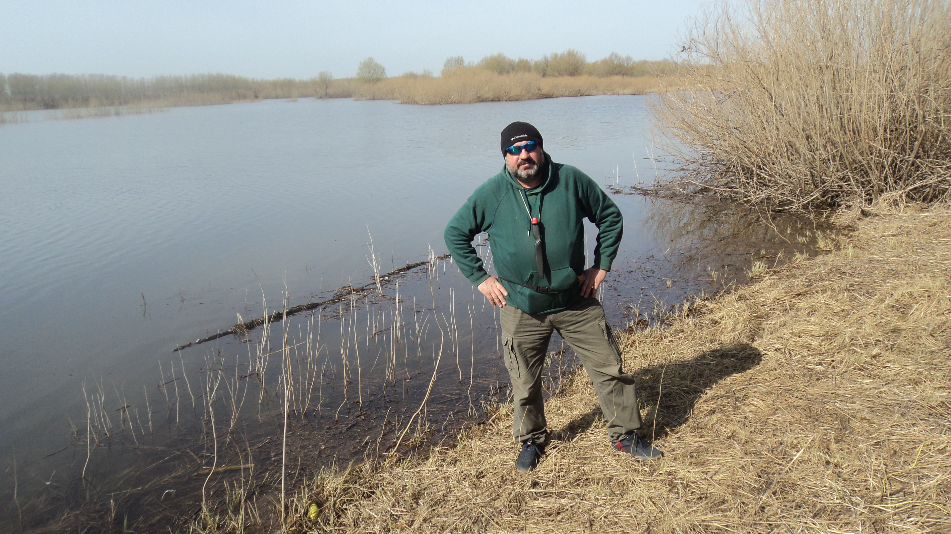 Выезд. Встреча на Каширке в 0.30 и направляемся в сторону Волгограда. Едем через Твамбов. Дорога вполне адекватная. По ходу 4 моста со светофорами проскакиваем быстро. Волгоград. Дороги к приезду Медведева подлатали. От Старой Ахтубы 300 км. пролетаем незаметно. От Анатолия Михайловича постоянно получаем информацию по тел., как надо правильно ездить на машине. Сасыколи. Поворот в пойму. Около 15 км. едем по дамбе. Только что прошел грейдер, но грязь не мешает двум внедорожникам успешно добраться до места назначения. Навигатор привел прямо к воротам. Там нас уже встречают "двое из ларца" - Ден и Серега. Чудная девушка Гуля проводит нас в "апартаменты". Размещаемся. В номере нет разве, что только джакузи. Приходит директор Олег Петрович, интересуется все-ли в порядке. Заметив, что нет калорифера, дает команду по рации и вот уже местный абрек тащит обогреватель. Накрываем в беседке. Ну, и за нас, и за спецназ... Причем только чай. К ужину Ден уже где-то выловил карасика... Странно, удочки еще не разматывали.
