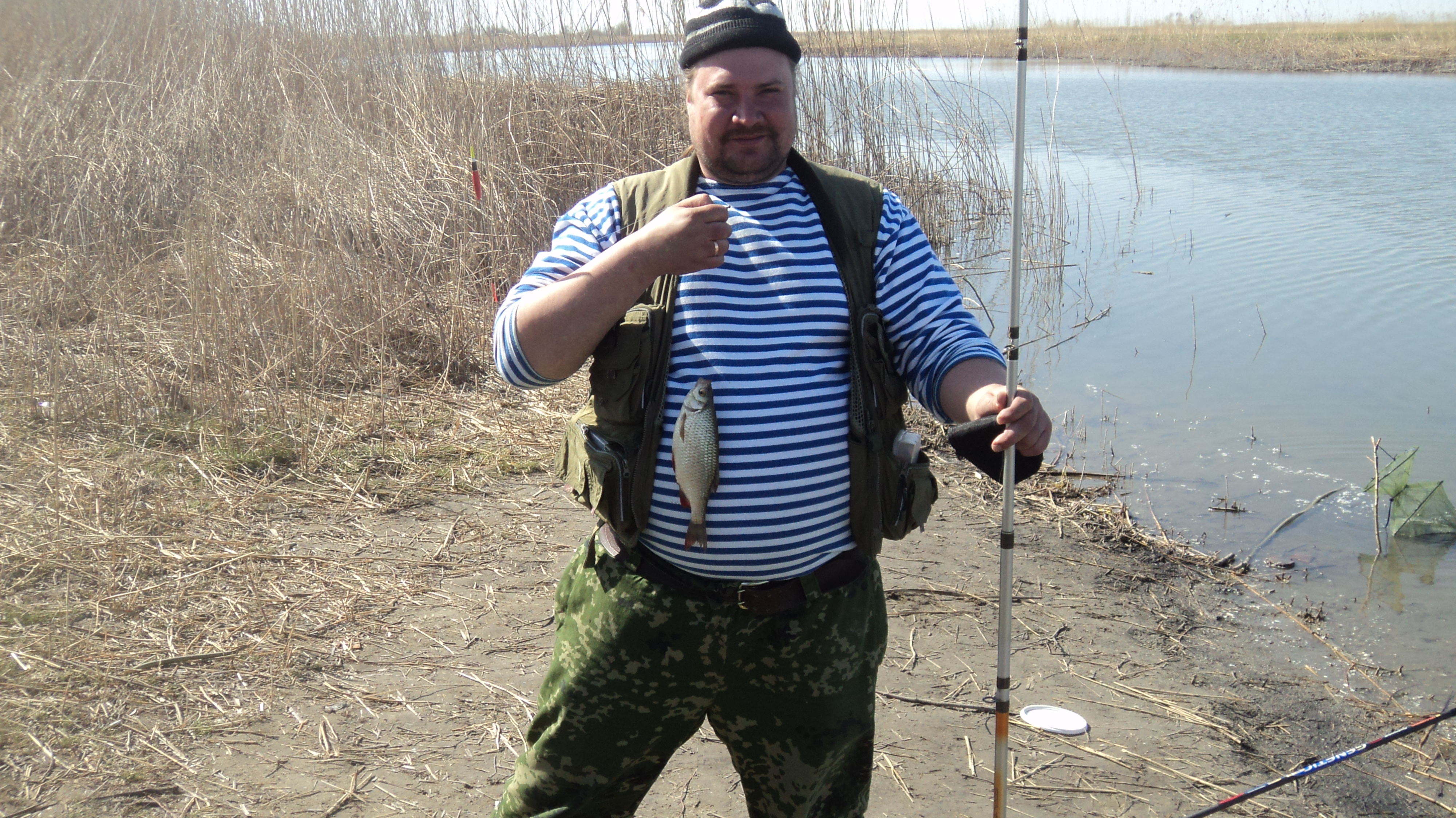 Воскресенье. Все еще прохладно и сильный ветер. Попробовал выйти на воду - чуть не перевернуло. Едем с Гадалиным искать счастья на ериках. Взяли лодку. Результат не радовал. Щучка кила на 1,5 и немного бели. Возвращаемся на базу. Поставили напротив домика в заливе поставушки с бутылкой. Наблюдали через бинокль за клевом из номера. Вот это рыбалка! Кстати, так на них ничего и не поймали.