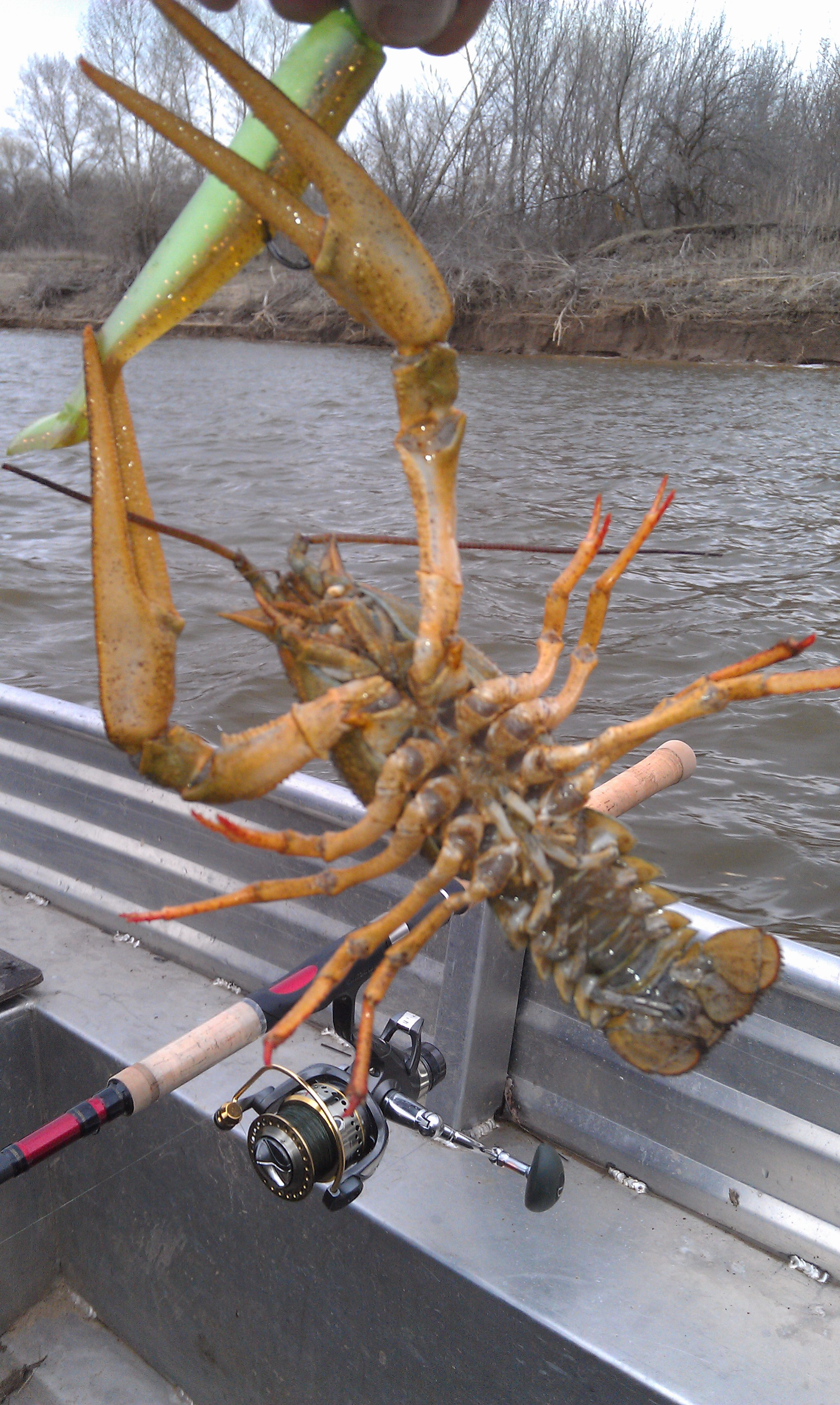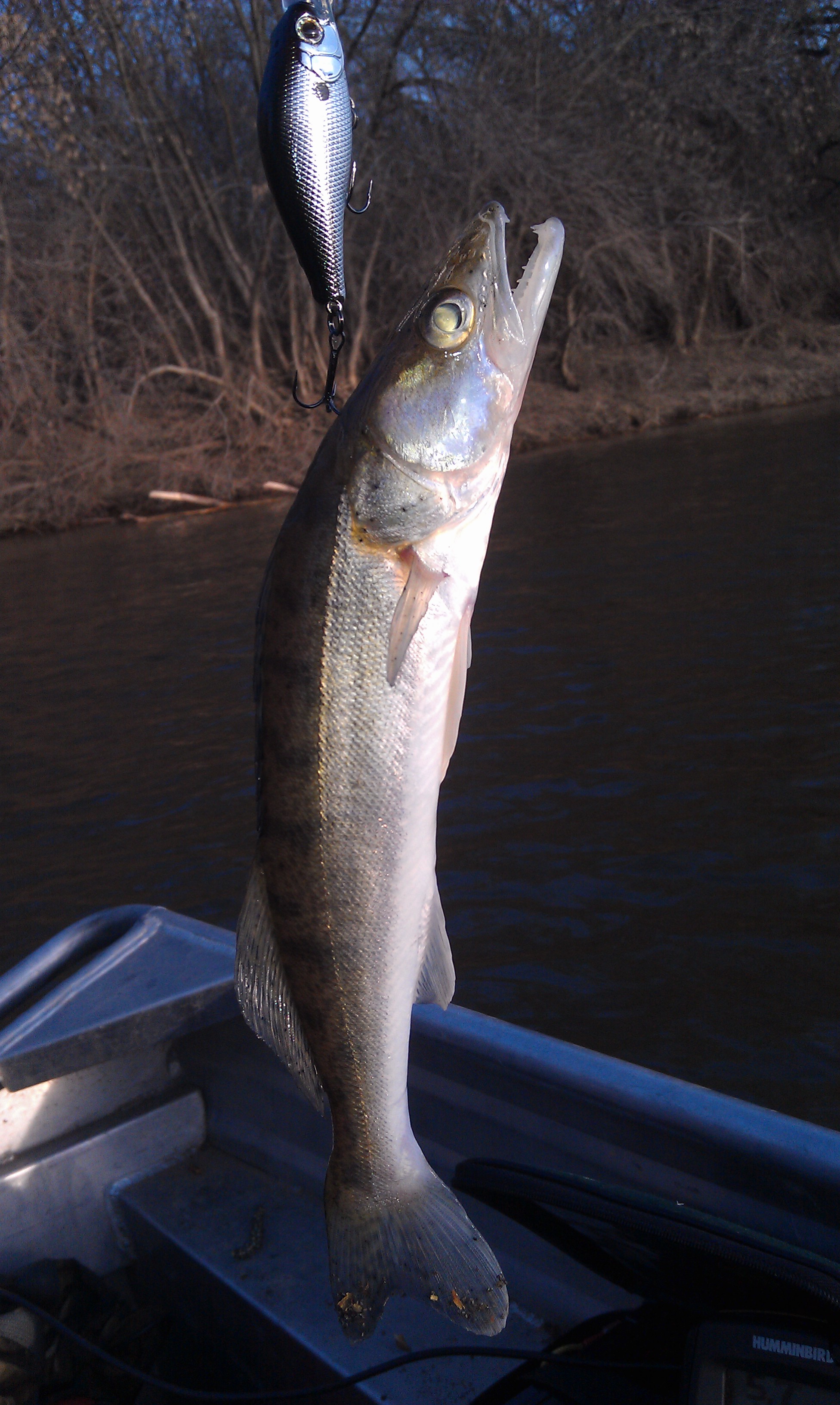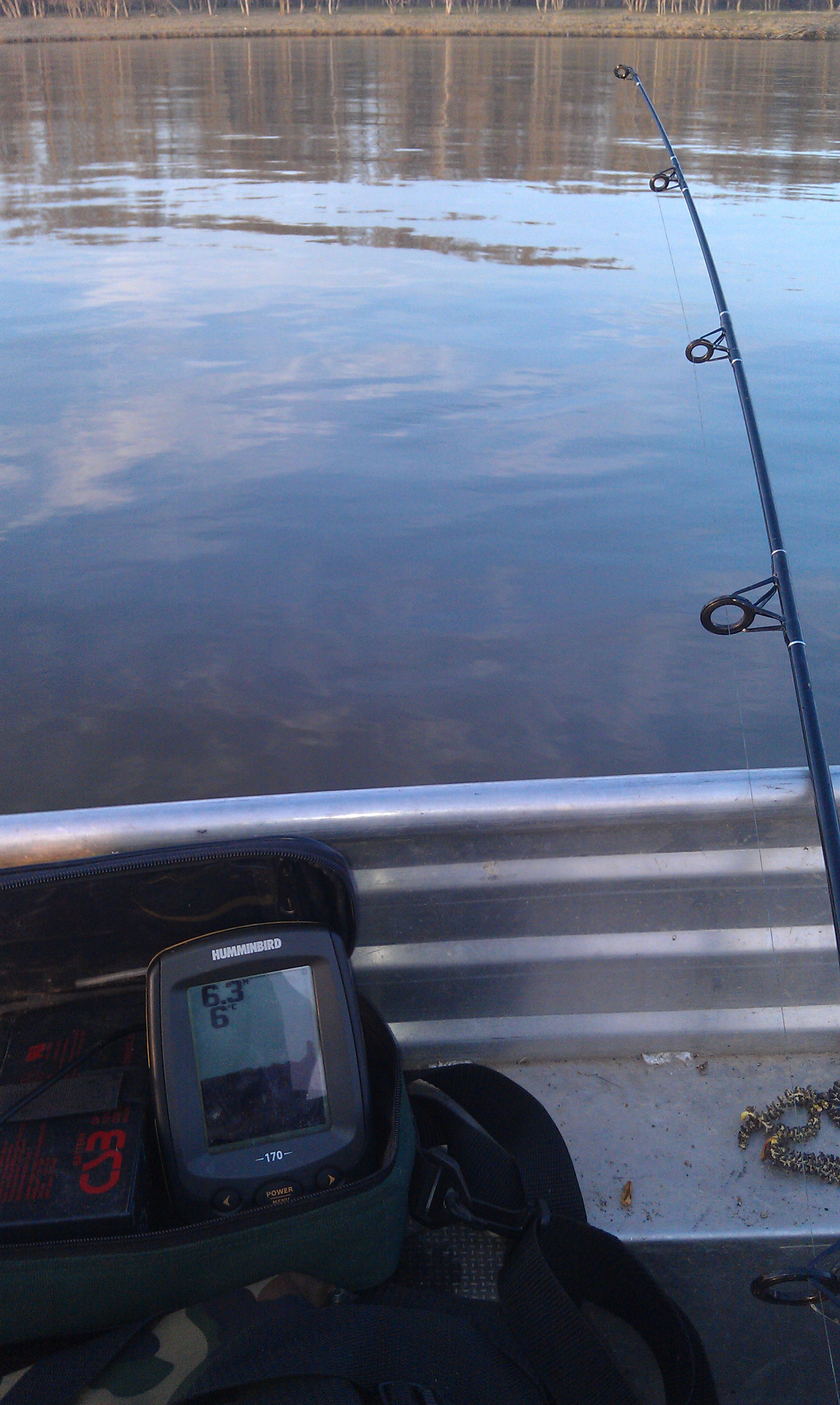 Суббота. Холодно. Ветер не сильный. Лодку свою решил не собирать. Взял РусБот. Отличная лодочка. С моей 5-й Ямой нормально бороздили вдвоем. С Гадалиным решаем пройтись троллингом по Ахтубе. Река в этом месте довольно широкая. Глубина 4-6 м. Ямы до 18 м. Через полчаса первый судачек на ZipBaits B-Switcher 4.0, глубина 12 м. Вода холодная. В Ахтубе до 4 гр., в Волге 2 гр. После обеда с подольскими поехали к ближайшему ерику. У Гадалина пара щучек и несколько выходов.
