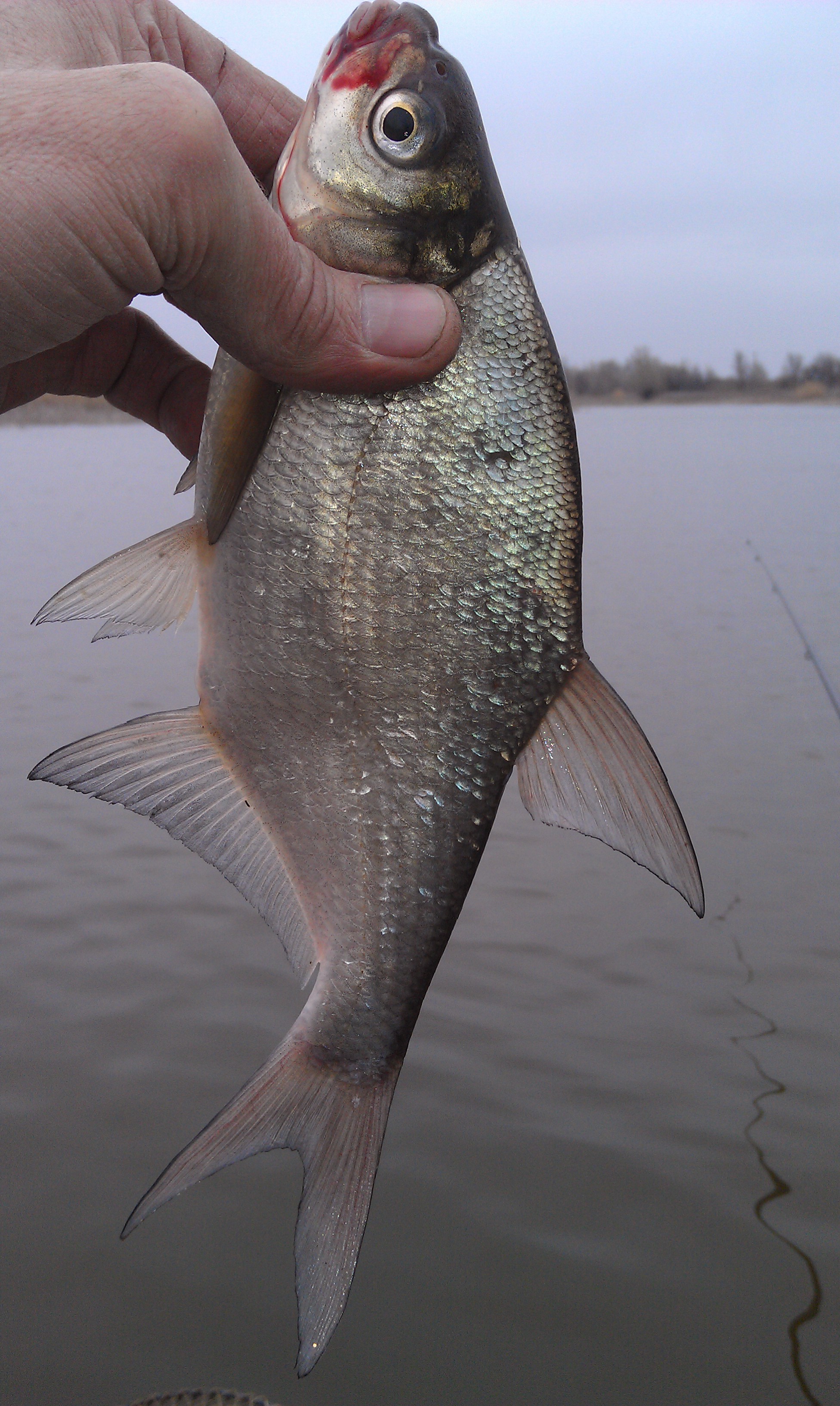 Понедельник и вторник. Решили идти на Волгу. Прошел слух, что там на корягах отрываются по густере и подлецу. От Ахтубы к Волге идет протока 1,5 км. Перед ней нашли ямку 18 м. Рыбы на экране очень много, но джиг ничего не дал. Хотя, рака все-же вытащил. Видимо ходит белая рыба. Пошли на Волгу. Заякорились. И понеслось, как из пулемета. Много зацепов на корягах. В основном ловился подлец на червя. Но были и сенец, чехонь, даже одного язика зацепили. Попался подлещик с недавним следом от щуки. Счастливчик амнистирован.