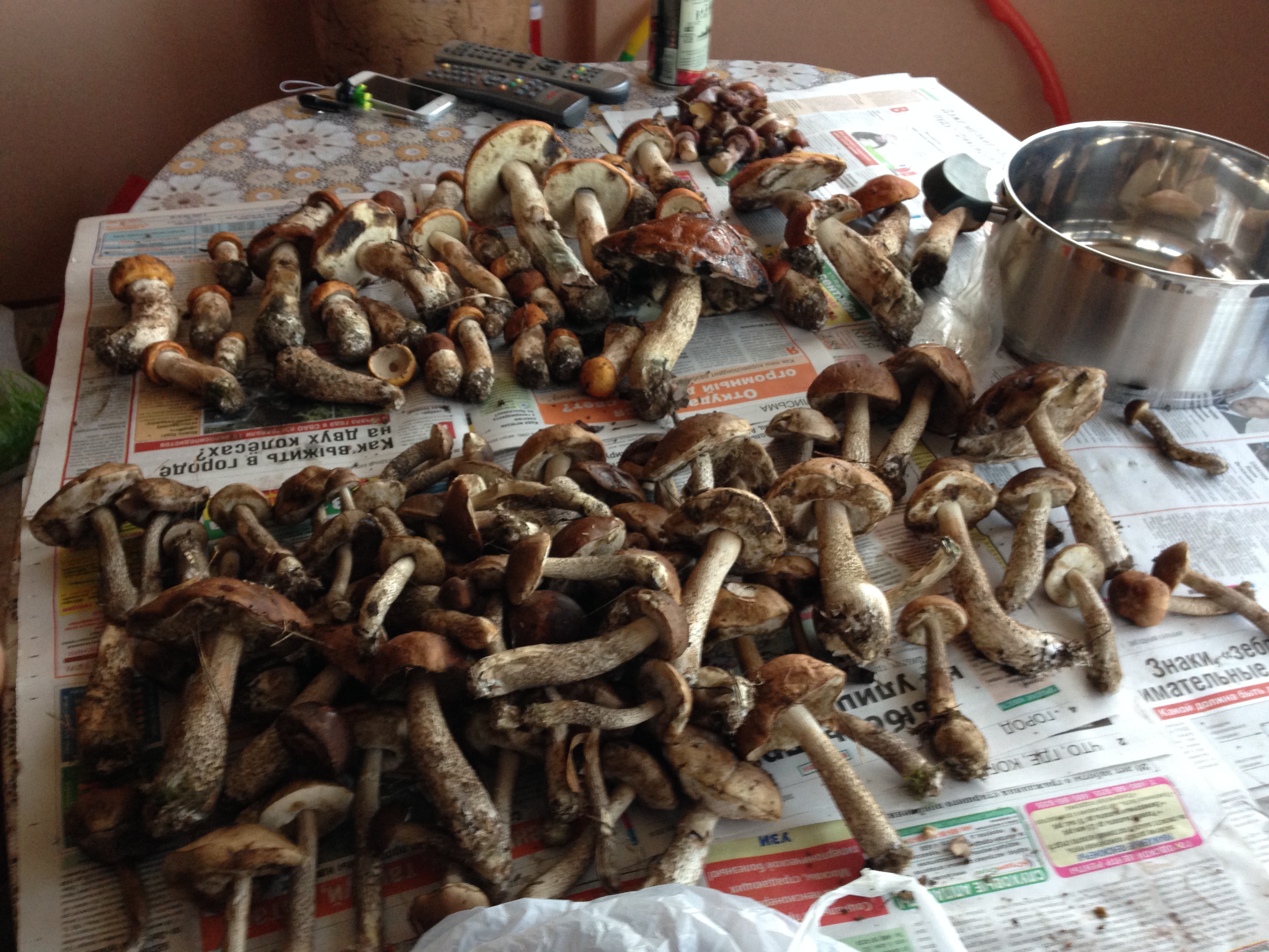 с утра гоняли на свои места за Таруссу...в итоге много подберёзовиков даже крупные все чистые поменьше подосиновиков и белых...тучи свинух но все молоденькие и крепенькие,не удержались и по пару вёдер набрали))))да и люблю я их)))в итоге с 8 до 14 на троих ведёр 10 набрали и накрутили километров 15...грибов пака маловато для этих мест.теперь в четверг на следующей неделе сгонять хотим...