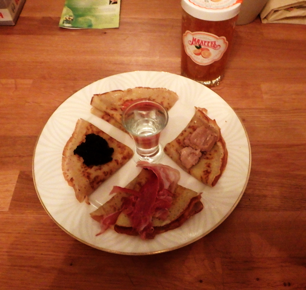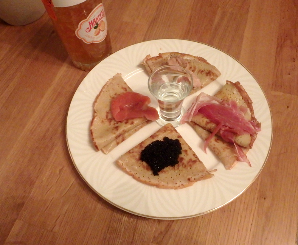Масленица однако... Закончилась! Готовили и жрали блины всю неделю! И дрожжевые и из блинной муки. Я предпочитаю блинную Пышечку. В качестве закусок - сёмга малосольная, бекон в нарезке, печень тресковая и икра чёрная... Очень всё получалось вкусно! Ну и рюмаха пролетала без гундежа...