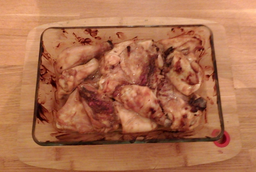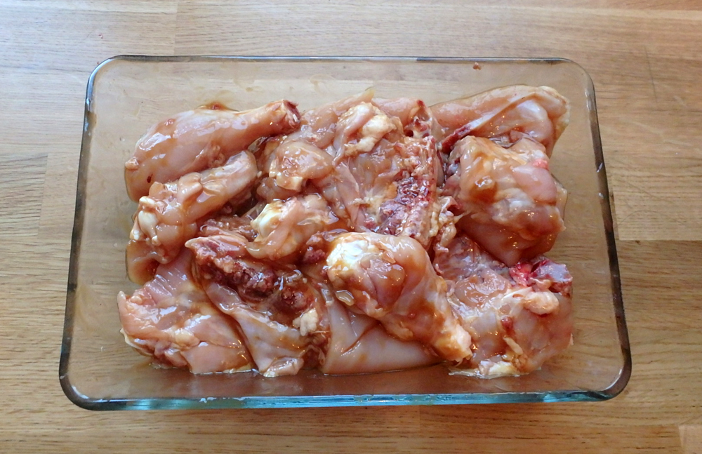 Терияки - сан... Курица терияки - ОЧЕНЬ просто! Берём курёнка - единственная затратная проблема - содрать кожу и отдать воронам.. После этого разделываем на порционные кусочки и в соус... Терияки! 30 минут маринования и в форме для запекания 40 минут под фольгой, при 200 градусах. Потом фольгу снимаем, ставим на гриль и ещё минут 10... Очень вкусно - едят сразу....