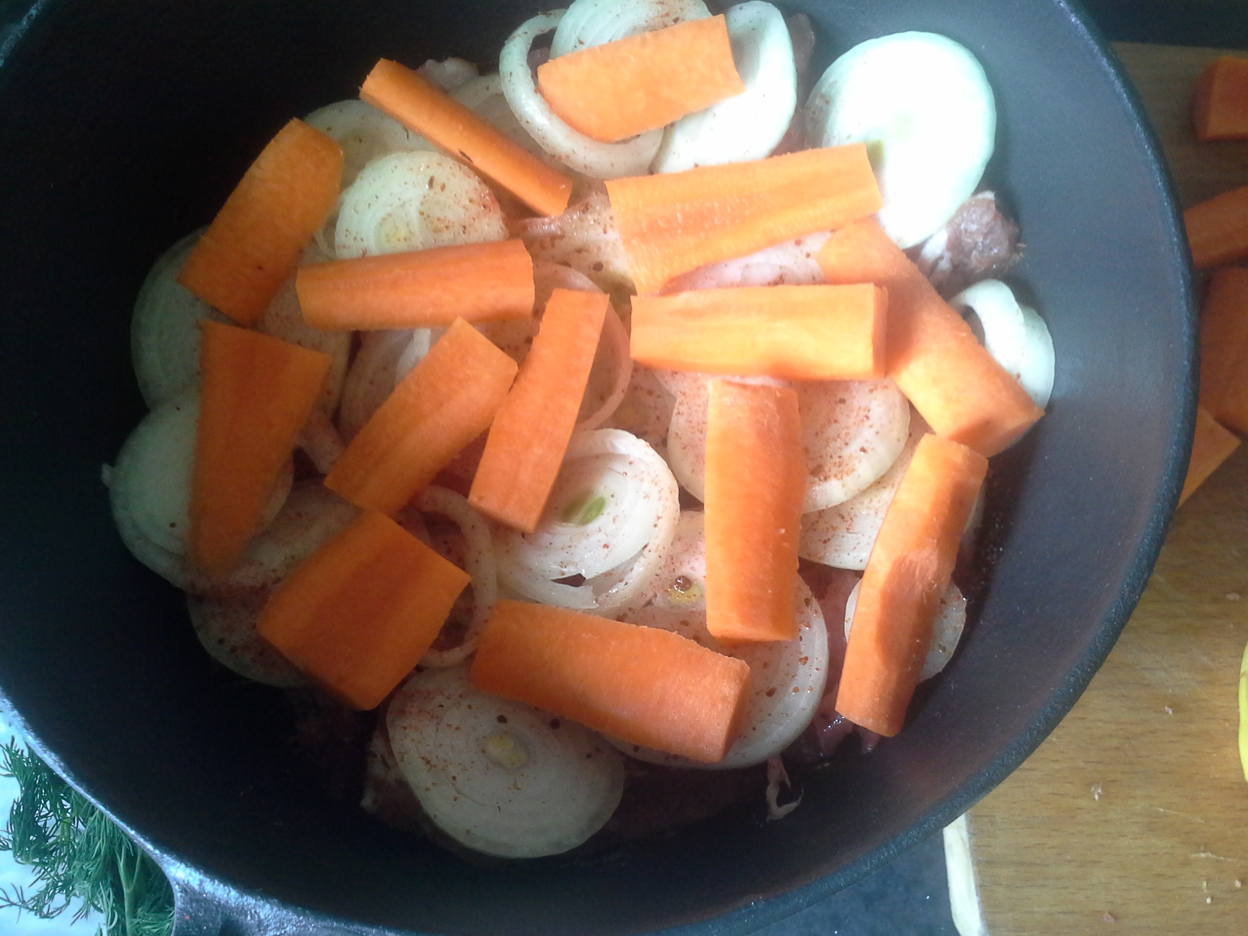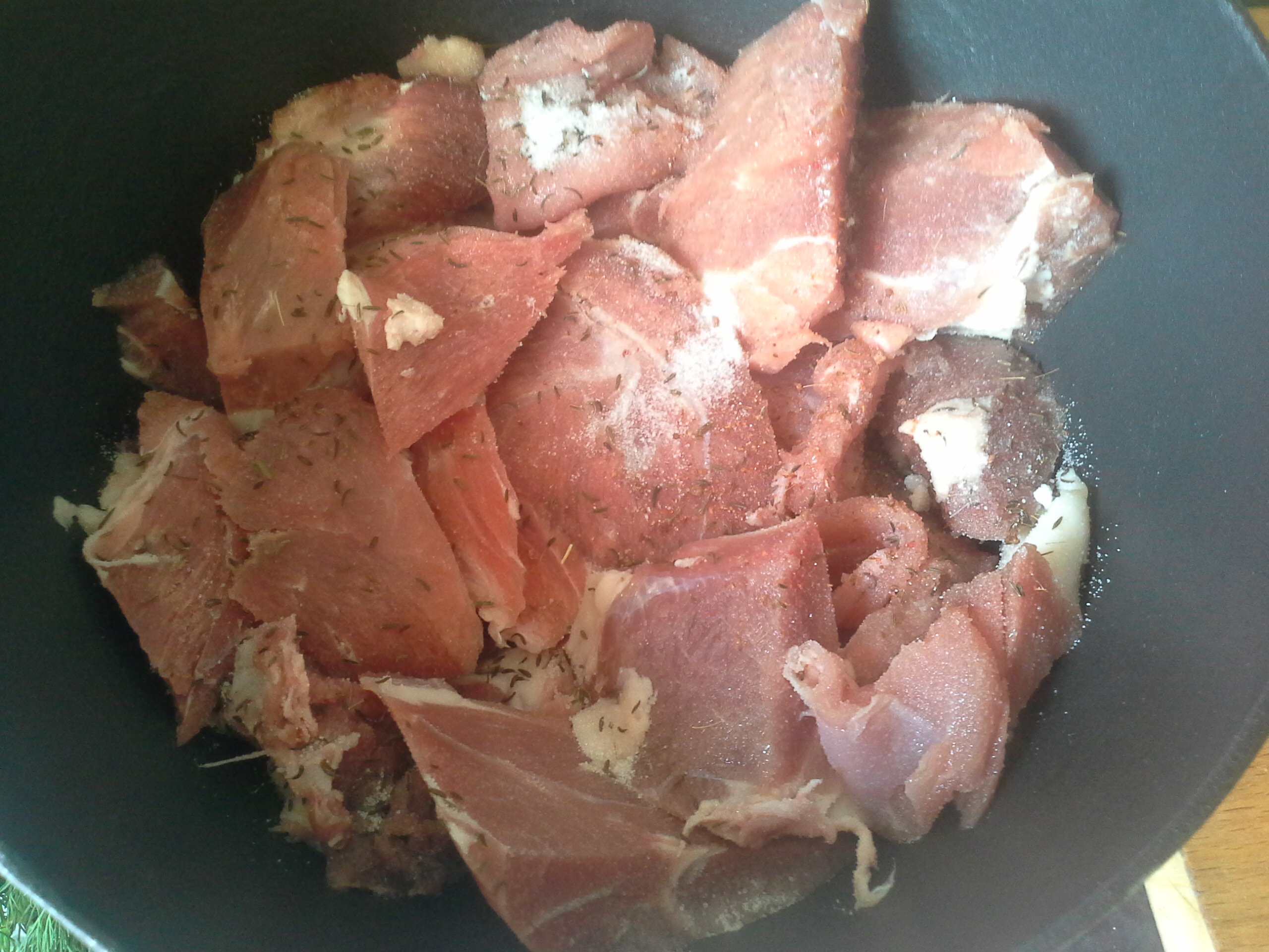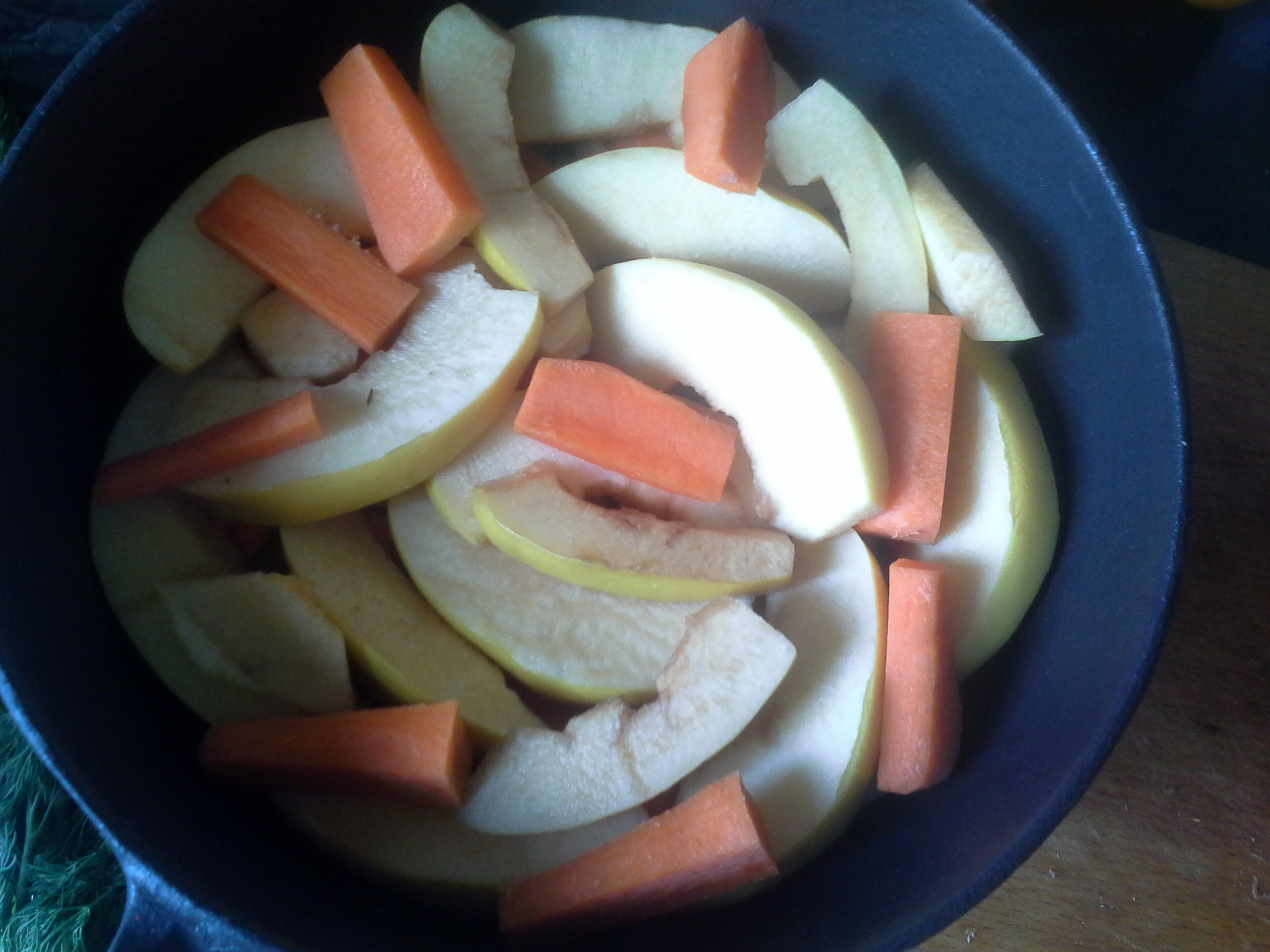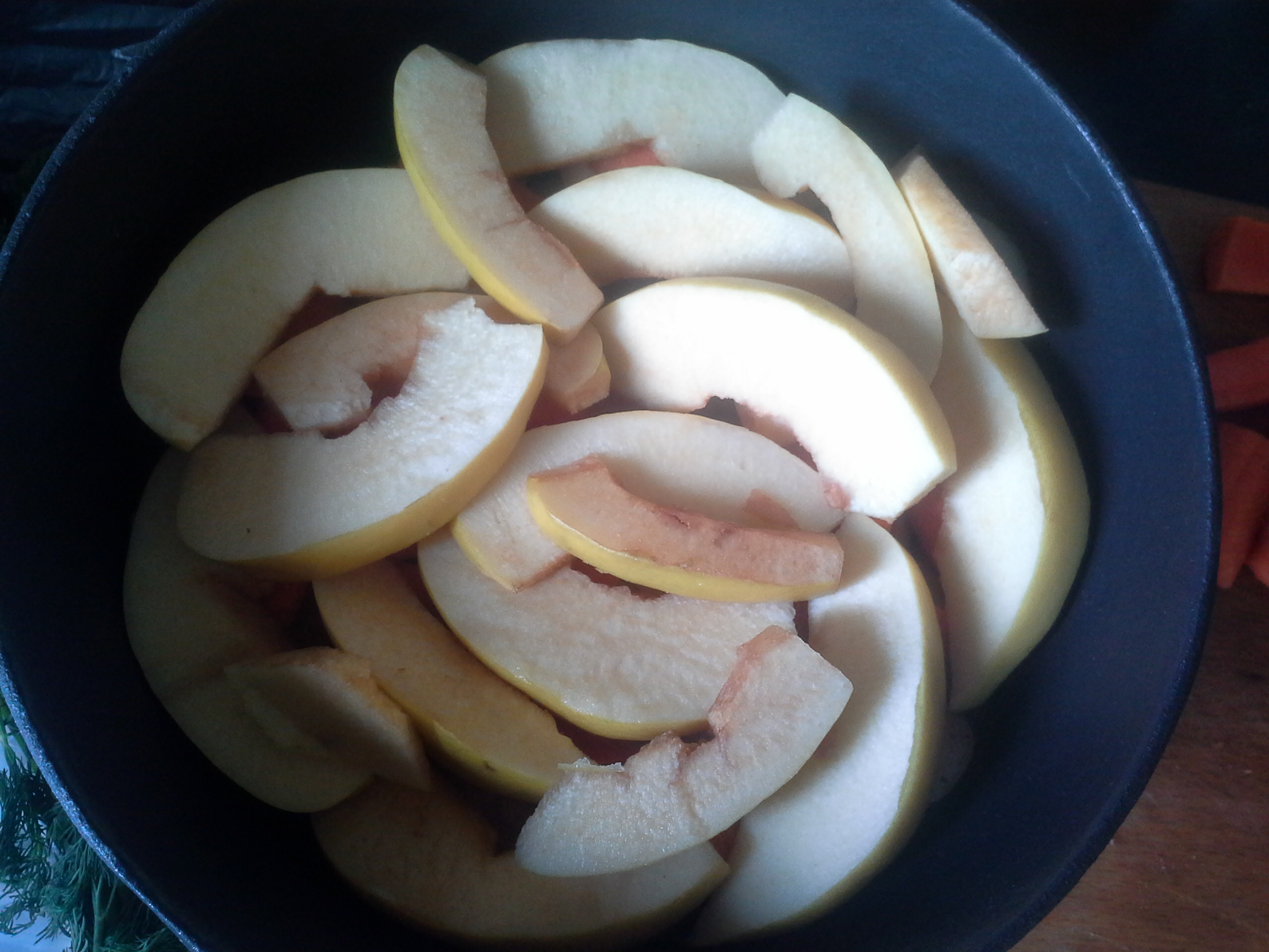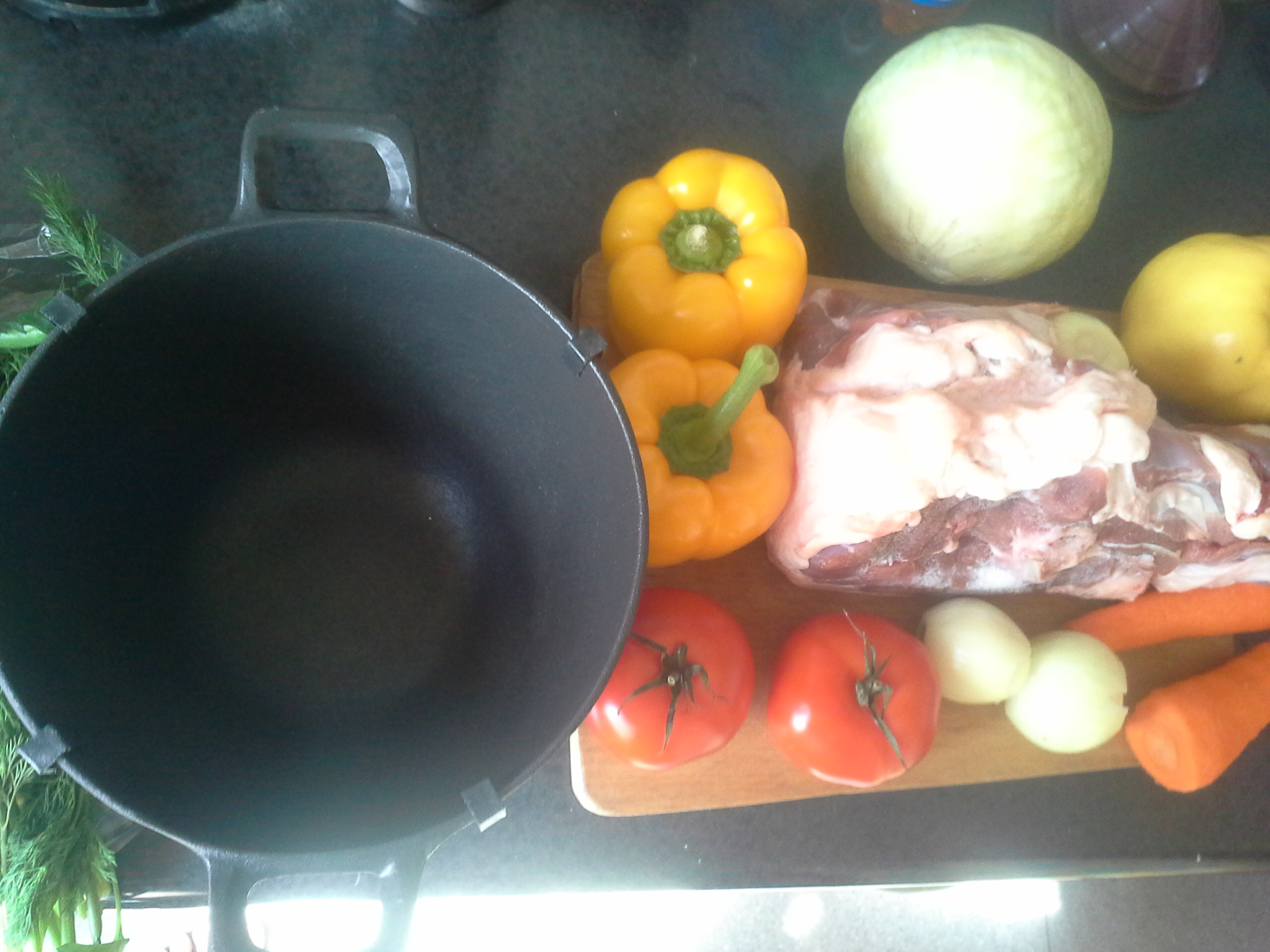 ДЫМЛЯМА БЕХИ Переводиться примерно как пропареная айва. За этой айвой я всё утро пробегал, но нашёл. Товарищ продавец сказал почти без акцента - свежая, новый урожай. Не знаю, я не специалист по айве, наверно свежая. Твёрдая как кирпич, рубил топором. Итак: блюдо простое, узбекско-крестьянское. Напоминает один большой ленивый голубец, но это в конце закладки, а в начале есть проблемка, как затолкать в чугунок все инградиенты. Но я упорный, я затолкал. Кстати о инградиентах. 1. укроп-петрушка, после того как всё почти готово. капуста свежая, любая, типа крышка, дабы сок не испарялся, на вид ну как есть большой голубец 2. перец болгарский 3. помидоры 4. морковка 5. айва 6. морковка 7. сванская соль и немного нашей 8. лук репчатый 9. зира 10. баранина по вкусу 11. жирок с баранинки (читать и закладывать наобоот)