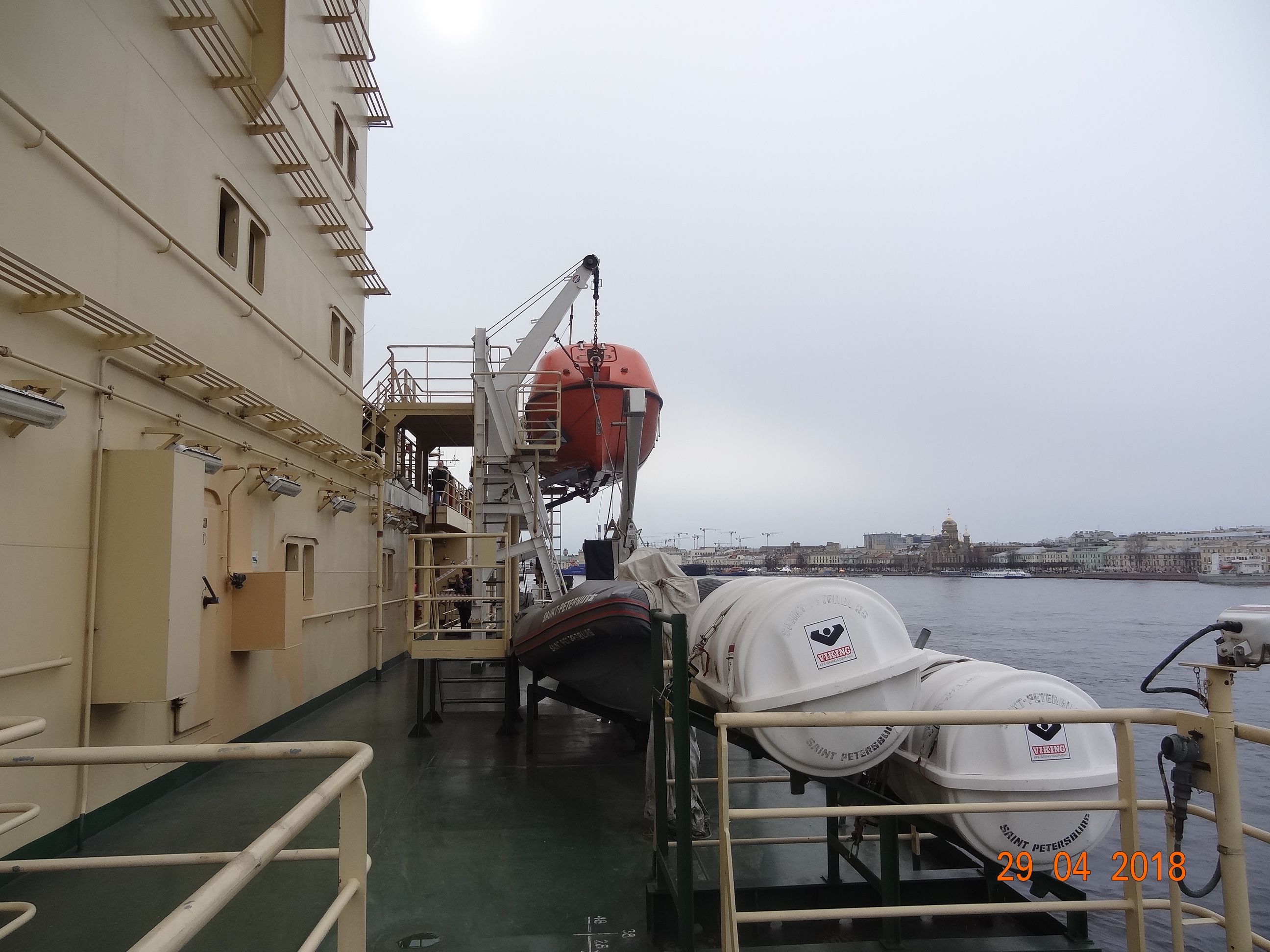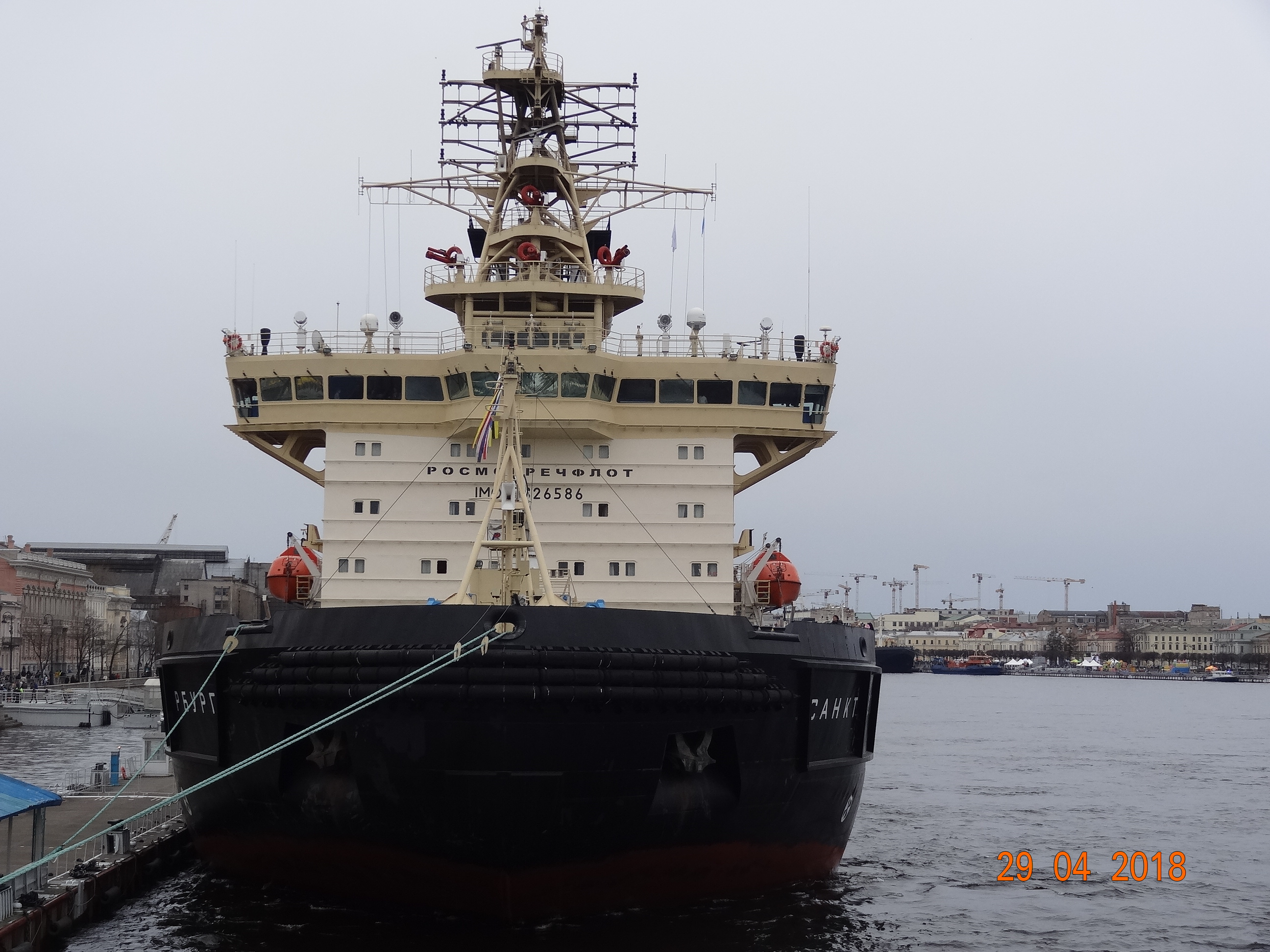 На фестивале ледоколов. Пока стояли в очереди, в "щелочку" между ледоколами увидели вальсирующие буксиры.)