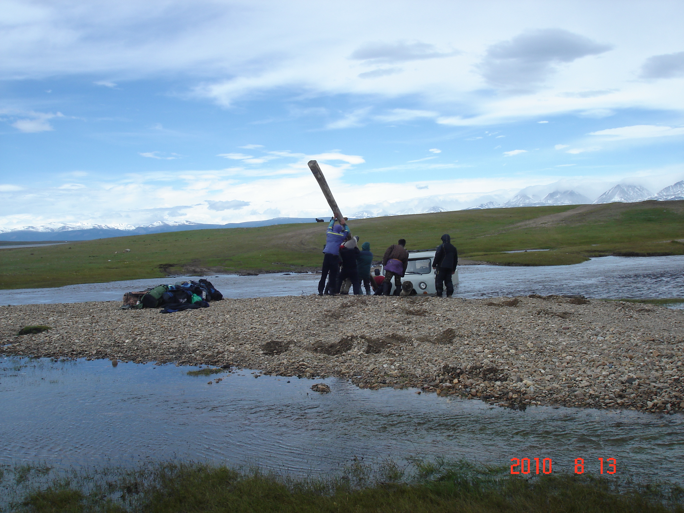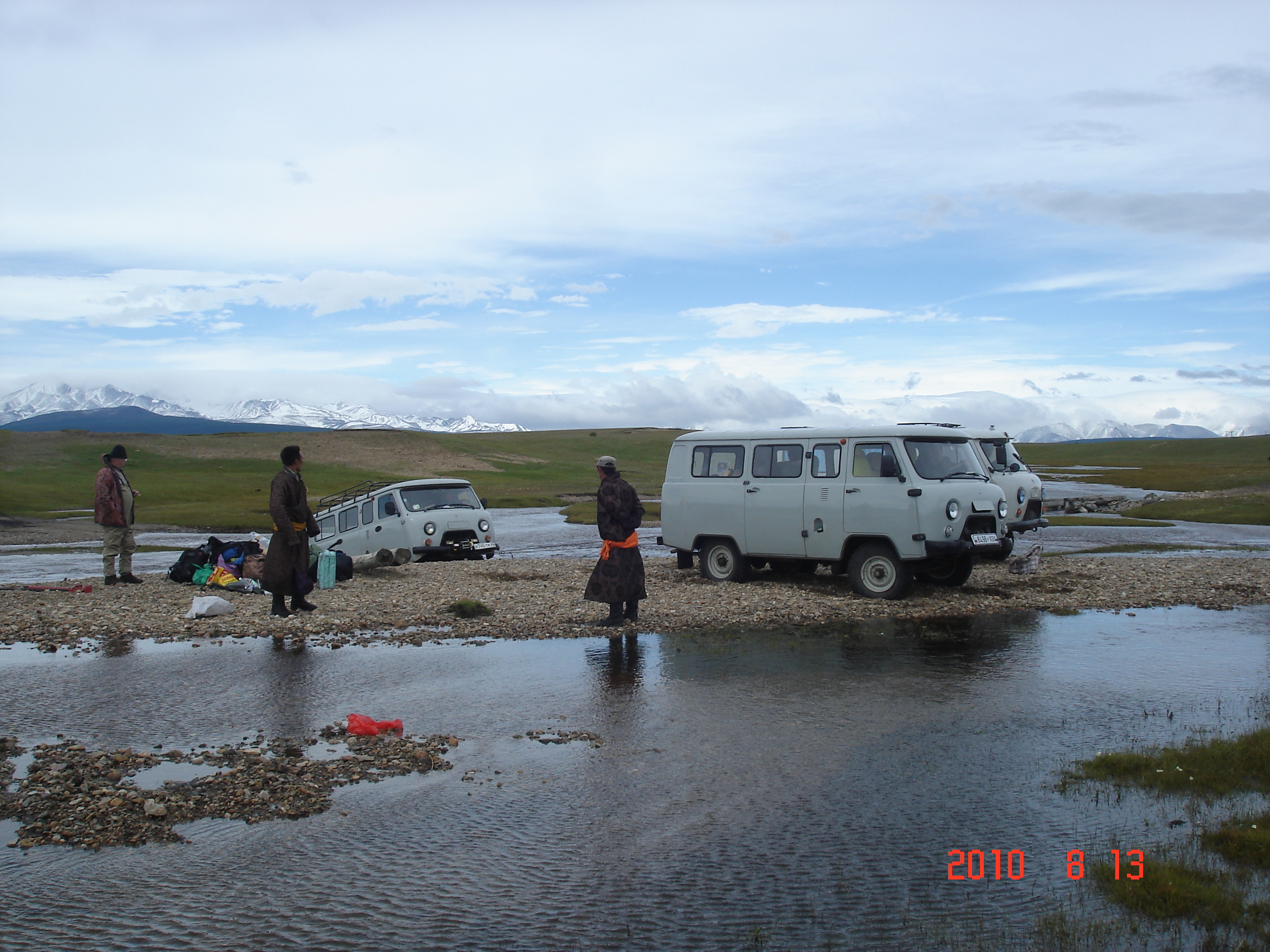 ПРОДОЛЖЕНИЕ 1. Фото 1, 2. Въехали в яму и получили многочасовую остановку. Вода стала заливать салон "Буханки", так что вещи пришлось эвакуировать. Фото 3. Российсо-Монгольские усилия по вызволению нашего средства передвижения. Фото 4. Подоспевший на помощь монгольский УАЗик не смог нас вытащить. Фото 5. Два УАЗика также не решили задачу. Фото 6. Наконец, два УАЗика и ЛЕНД КРУЗЕР (за кадром) освобождают нас из плена реки Ханх-гол. Фото 7. Место плена.