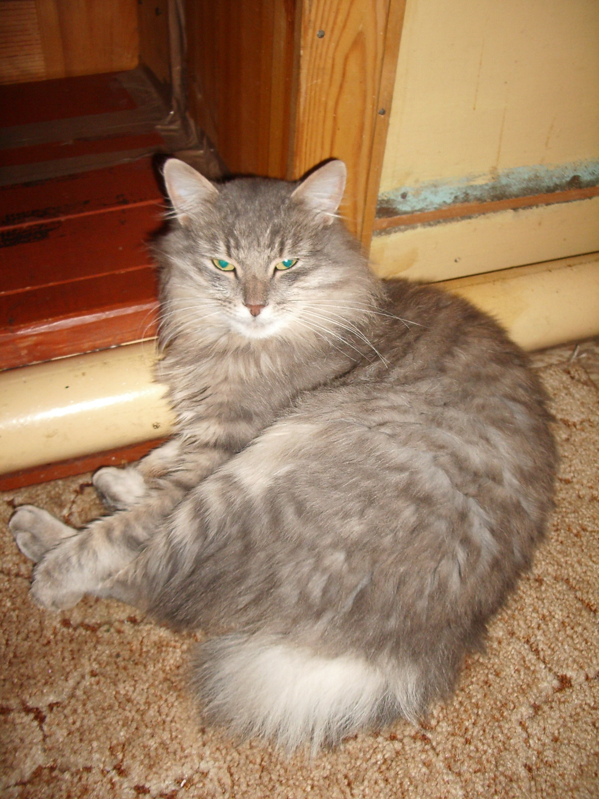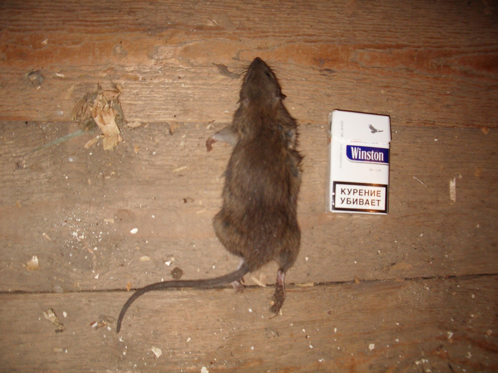 Кот старый на чердаке с кем то воевал.Пошёл смотреть,а там прям возле двери подарок нам принёс!!!Крыса,да здорова!!! Молодец,не зря харчи кушает!!!