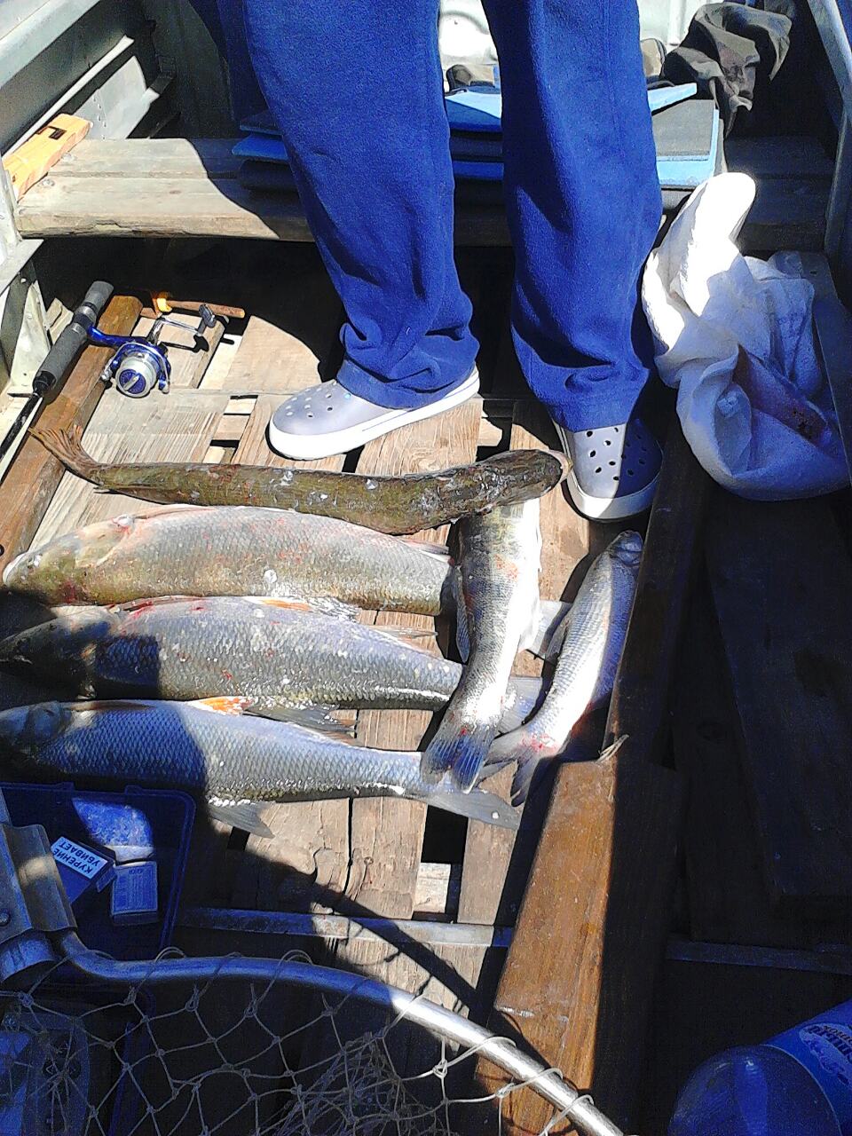 В итоге: лещи, буфало, сазан (один у Марата), бель всякая ... млядь, плотва по 300 грамм за рыбу не считалась :)