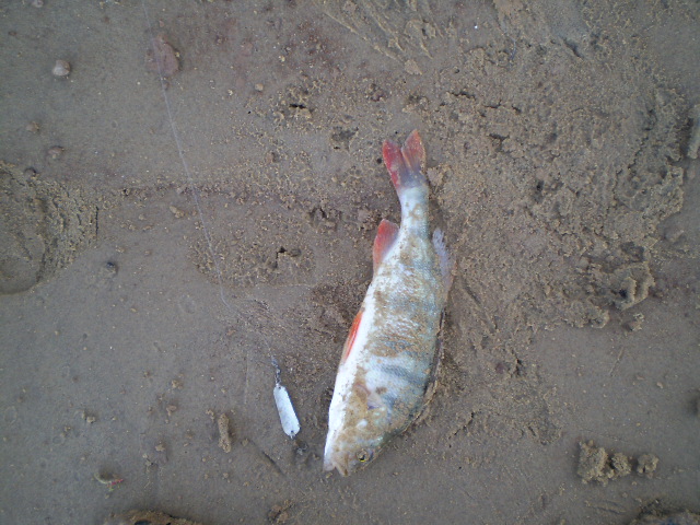 Сейчас жарко, +37, давление снижается, 755 рт. ст., юго-восточный ветер 2-3 м/с. Уровень воды по-прежнему высок, а рыба - капризна и прячется. Но кто хочет, тот ее находит. В дообеденных уловах джиговиков и троллингистов - судаки до 4 кг и щуки - до 3-х с хвостиком. У меня добыча позауряднее - окуни, и пара сходов достойных рыпов (около 11 вечера с пляжа и сегодня утром), из приманок сработали коричневые твистеры 5 дюймов и миниколебалки на отводнике.