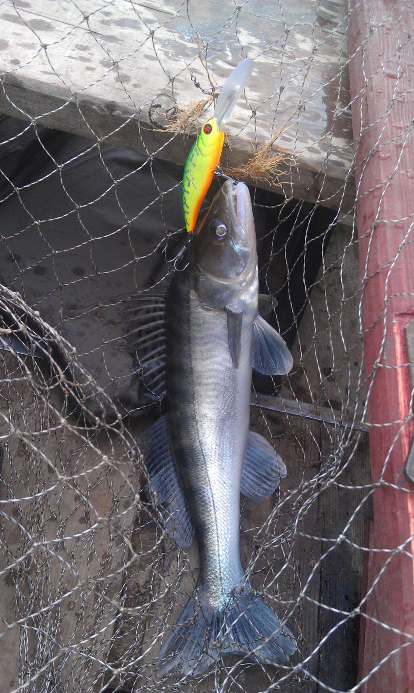 Когда ветер устаканился, мы поняли где надо тролить и главное на что. Все осенние воблера оказались бесполезными. В закромах нашел пару "попугаев" метров до 3-х и дело пошло. Стали попадаться приличные судачки. Щук не было ни одной. При чем, если шли по левой стороне на течение, то попадались мелкие судачки, но чаще, а по правой - крупней и реже. Такая вот арифметика.