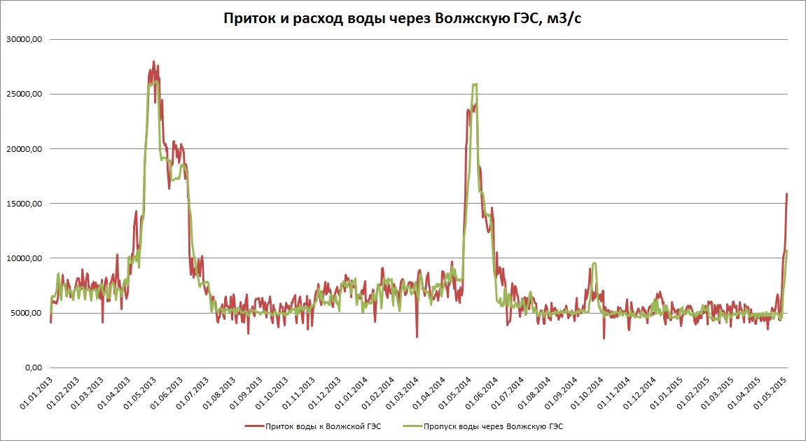 С 6 по 31 мая среднесуточный сброс составит 17 тыс. куб. м/с.