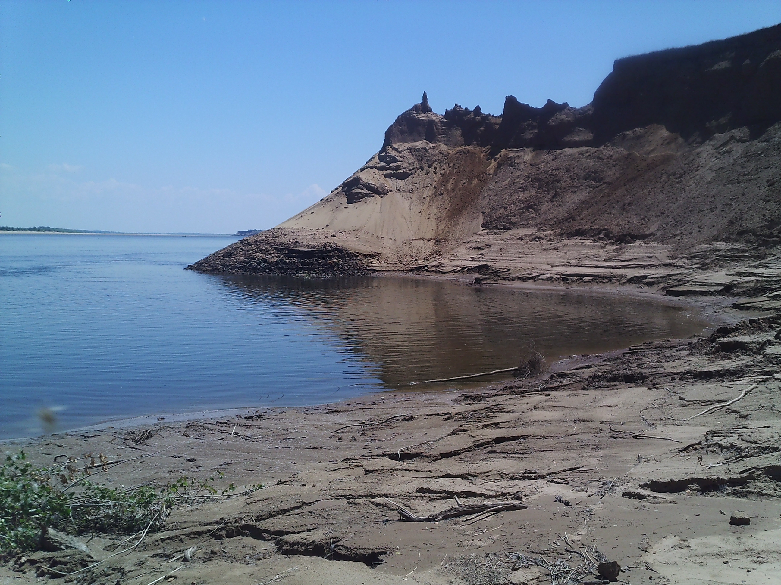 Большое дело начинается малым - поимке пудового сома в Волге (фото в посте №468) предшествует ловля живца (карася) в пруду. Что деревья ходить не умеют, я до нынешнего приезда на базу был уверен. А теперь есть повод усомниться - в прошлом году это дерево стояло на верху яра. Когда фоткал змееныша со щуренком, сзади в двух шагах навернул гигантский жерех. Адекватно отреагировать я не успел(. Глазел на чужую добычу и упустил шанс изловить свою. Заводь за "лесом", что возникла пару лет назад, стала больше. Частые гости на отводном, особенно с мелкими блесенками - чехонь и сельдь. На примитивнейшем самодельном кукане рыбе комфортно.