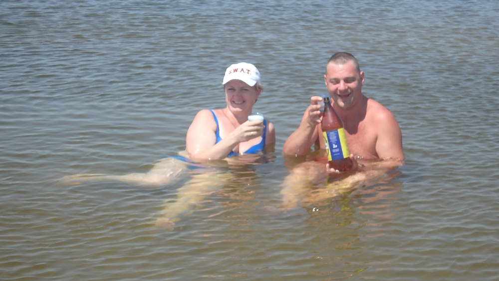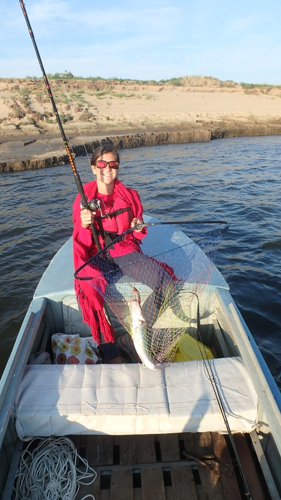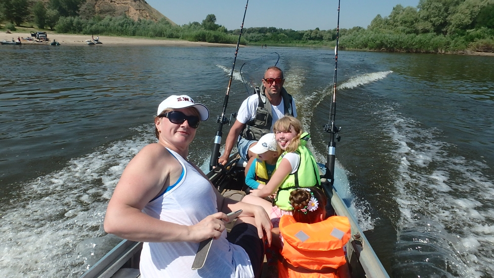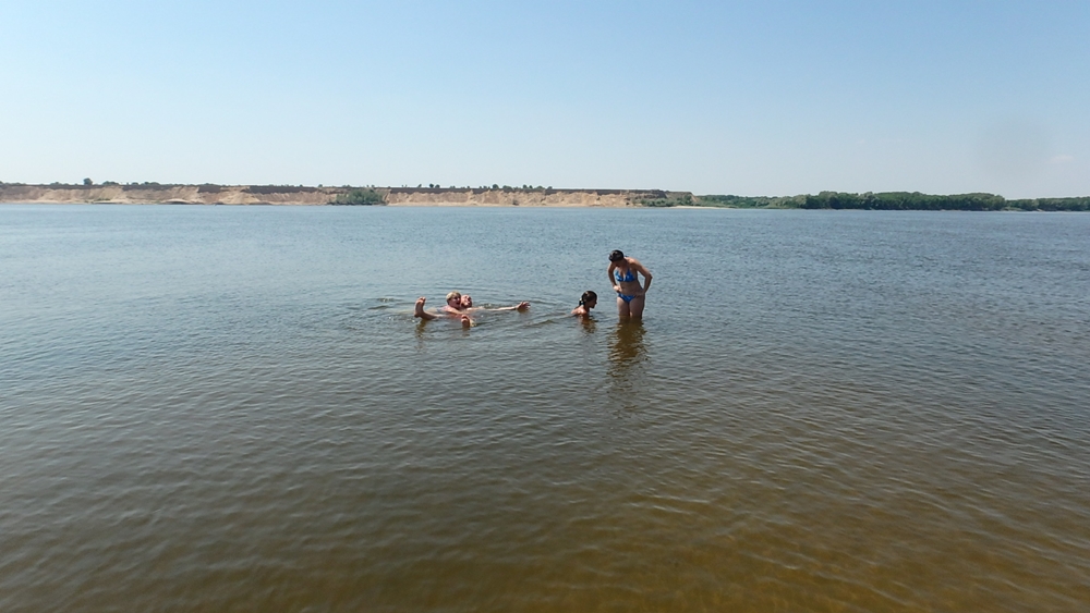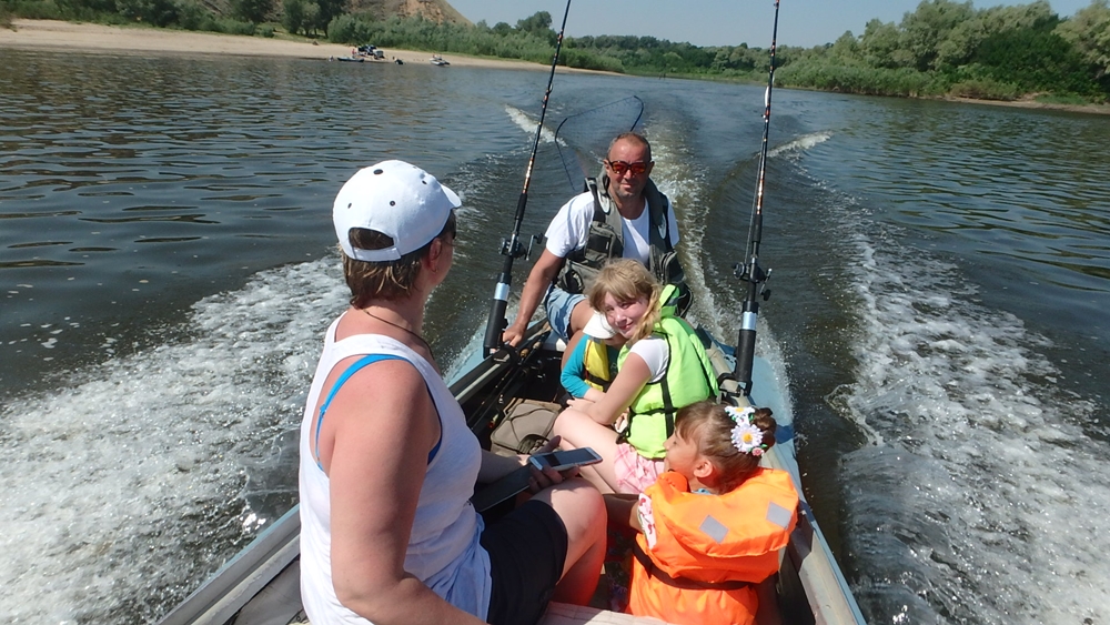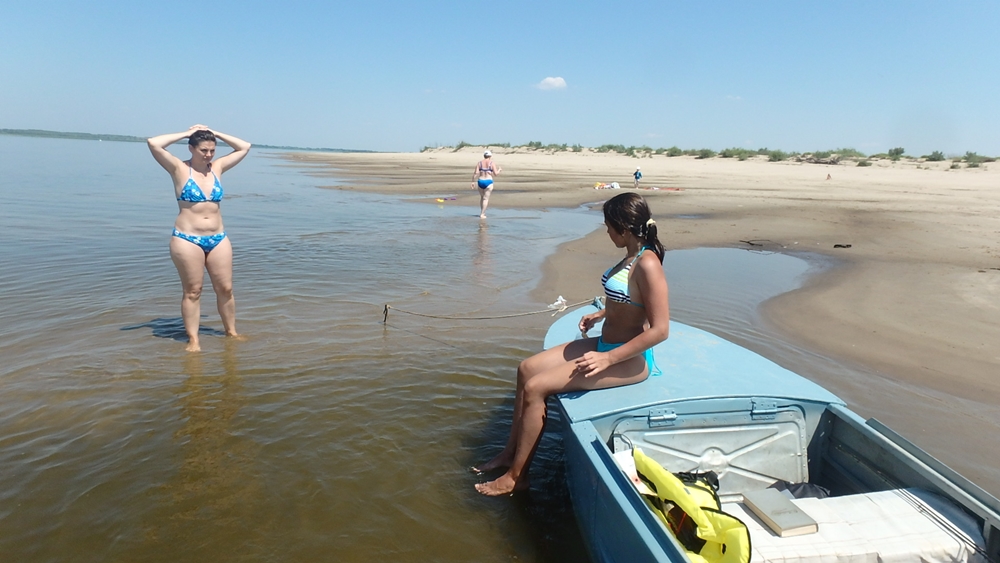 Да! Молодожёны сегодня рванули! 15.300 - чистый вес! Сладкие пока не прибыли... А мы встретили Виталия - с мешком окуней, щупаков и судаков... И поехали купаться "на тот берег"... Детский сад с вожатой... Прибыл и Колябин с холодным пивом. Вода 28 градусов. Накупались в удовольствие и Поля отвезла нас назад....