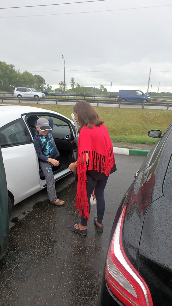 Собрали шмотки и у подъезда и любезный Бен-Ладен нас добросил до Речного. Дождик не помешал прибыть и провожающим.