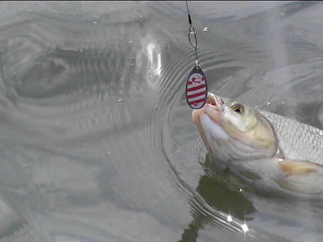 Вот на эту вертушку №6, у меня клевало лучше всего и были 2 поклевки все отрывающих монстров, на красно-белую №5 брало заметно хуже.
