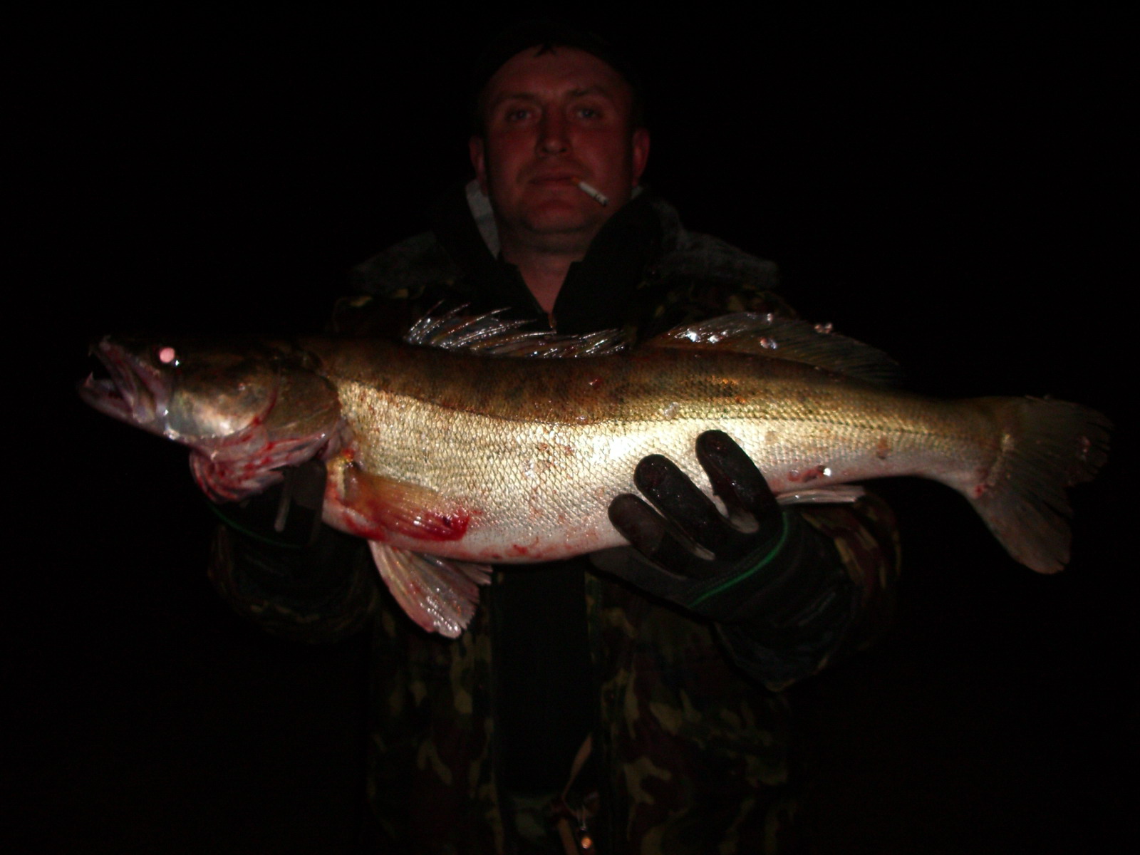 Начинаем ловлю чуть позже обычного.В ночь пошёл дождь и лил до 10-ти.Затем ветерок,выглянуло солнце,потеплело,обсохла дорога и мы в путь! Пару мелких судачков на 75-ый тцирубито и тишина.Решаем зайти в штаны на мелководье.Сильный ветер несёт нас на меляк(а весло у нас одно и то аллюминевое) делаем пару десятков забросов.Пару крупных окуней,несколько выходов щуки,но садимся на меляк. С трудом выходим где поглубже и возвращаемся на ямку.Решаем эксперементировать.Миха достаёт коробочку с "Китайцами" заглублением 3+,я ставлю Бомбер 24+!И дело пошло.Стал попадаться судачёк,бершачёк.Некрупный,но приятно!Солнышко стало садиться и попадаться стали судаки по крупнее! Опять в темноте домой!Завтра тудаже!!!Вечером за рюмкой коньячка понимаем,что крупный судак начинает брать на закате.Итак рисунок завтрашней рыбалки ясен!Самое главное время заката! Утро(ближе к обеду).Мы на месте. Начинаем троллить. Попадается небольшой судачёк,бершачки.Некоторых даже отпускаем.Но как то всё вяло.Решаем пройтись чуть выше. Место,где все ловили летом(от красного бакена до косы).Там поглубже и проход длинее.Миха ставит 85-ый тцирубито я бомбер 25+. Но ни одной потычки!!!Решаем возвратиться!Замечаю на фоне тёмного борта корабля,проходящего напротив базы,на мысу(Место называется Жигули),стаю чаек.Ага,видно жереховый бой!!! Идём туда.Якоримся.Котёл на время утихает.Решаем бросить каст и провести ступенькой. Бах,бах. Дуплет!И у Михи и у меня по жереху!!!Шелепстёр брал исправно.У меня два обрыва,у Мишки леска перепуталась.Эти бойцы помучали нас.На полтора десятка красавцев от кило до двух пополнили наш мешок!!!СОЛНЦЕ САДИТЬСЯ!!!Время пришло,да и бой рассасался.Возвращаемся к троллингу!Я вспоминаю,что у меня есть Юзкрик хард кор-как раз к месту!!!Ставлю его.Начинаем первый проход.Мощнейший удар,недолгая борьба и обидный сход...Продолжаем.Ещё удар.И судачёк на 3.500 в лодке!!!Ого,юзурик то работает на отлично!!!Ещё пару мощных ударов и сходы(в это время наливали,выпивали,вот и сходы!).Ловим...А солнце то уже село...Когда выпивали сказали тост друг другу :споймать по крупному судаку. Видимо Миха пожелал мне от чистого сердца! У меня поклёвка,борьба и красавец клыкастый на 5.200 в лодке!!! МИХА,СПАСИБО!!!Ловим ещё одного небольшого и тишина.Ну чтож,как обычно мне везёт в заключительный день рыбалки!!! Выпиваем по рюмке и домой на базу!!!