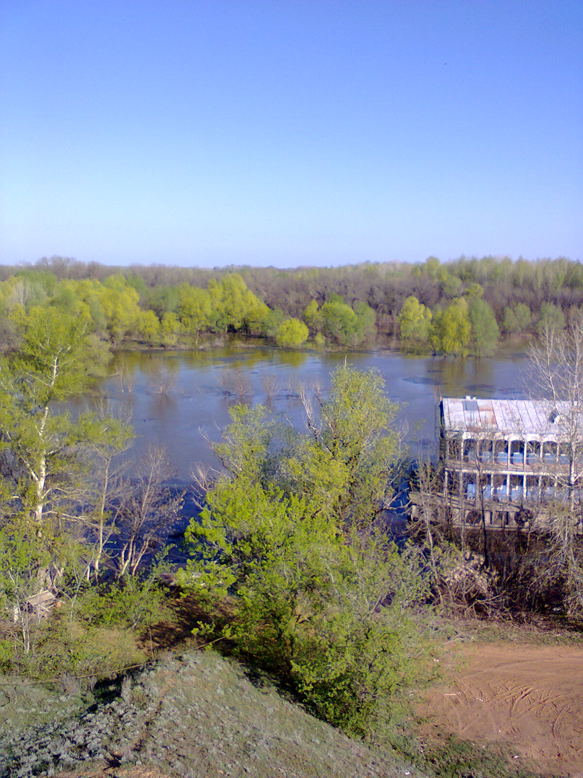 Вода все приходит перевалила зимний уровень и тихонечко подкрадывается к яру моет потихоньку берега на фото видна пена грачевка практически затопилась много мусору плывет