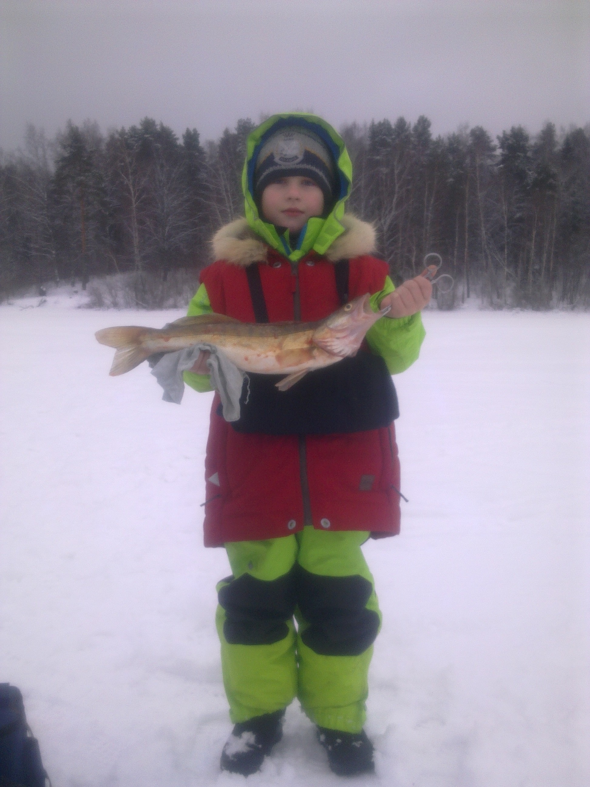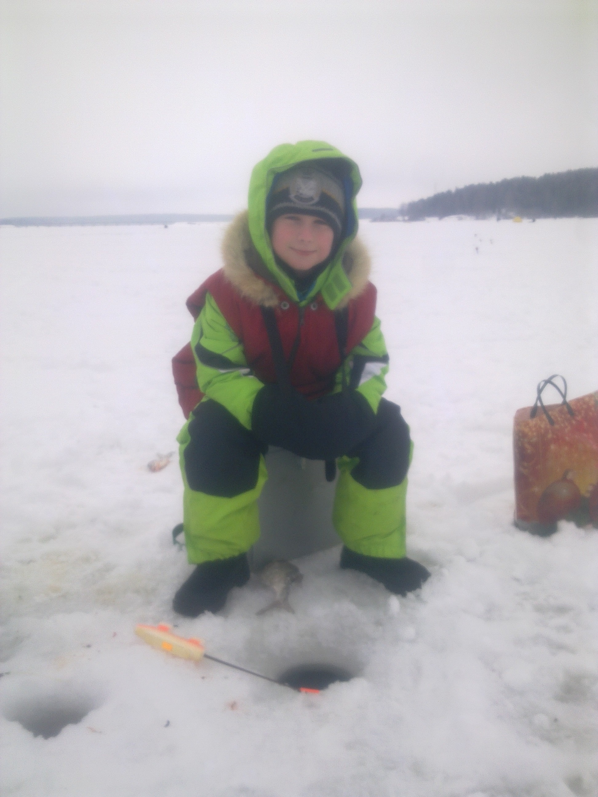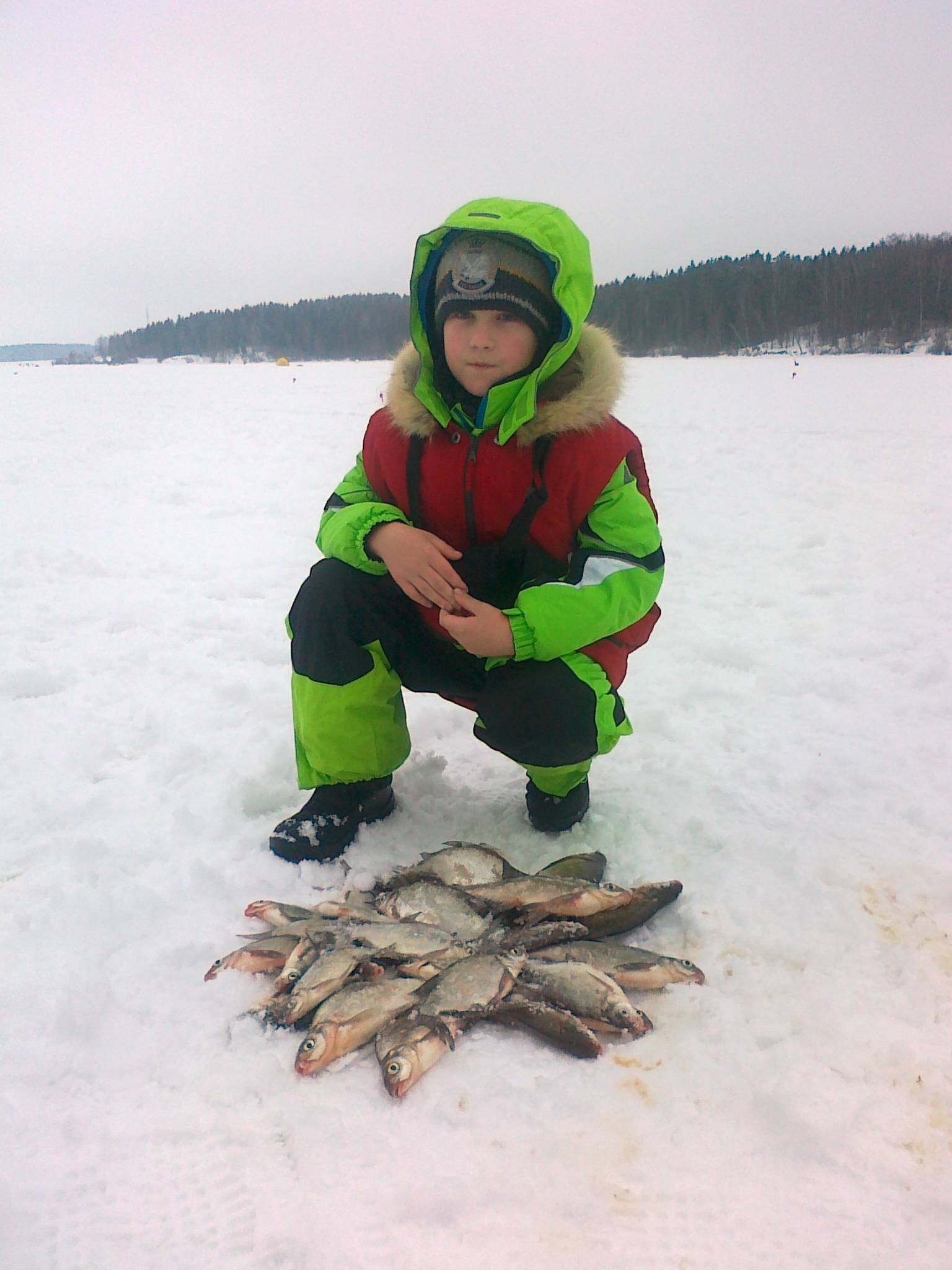 Решил я попробовать вывезти на зимнюю маленького.Думал посижу с ним пару часиков и домой. Но Данька оказался достойным наследником. Папку обловил, сам подсекал и вываживал с 10 метровой глубины . Домой ехать днем отказался наотрез а вечером по дороге домой все спрашивал когда еще поедем на рыбалку.