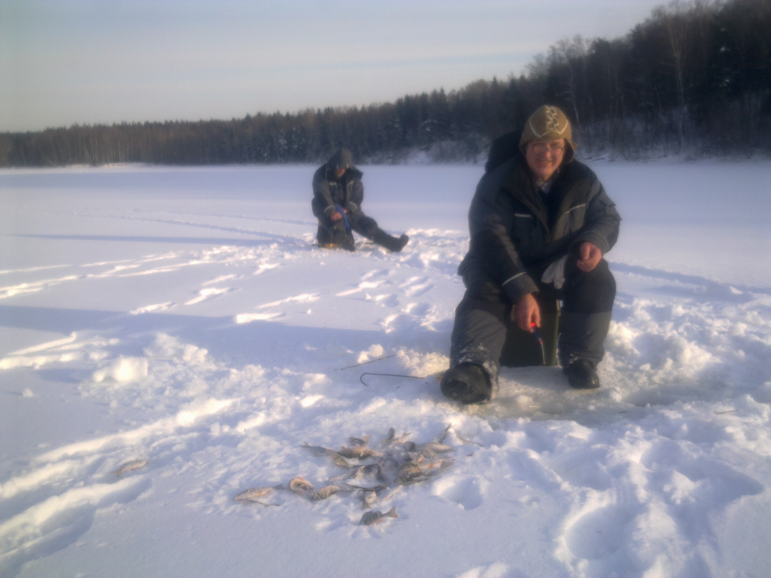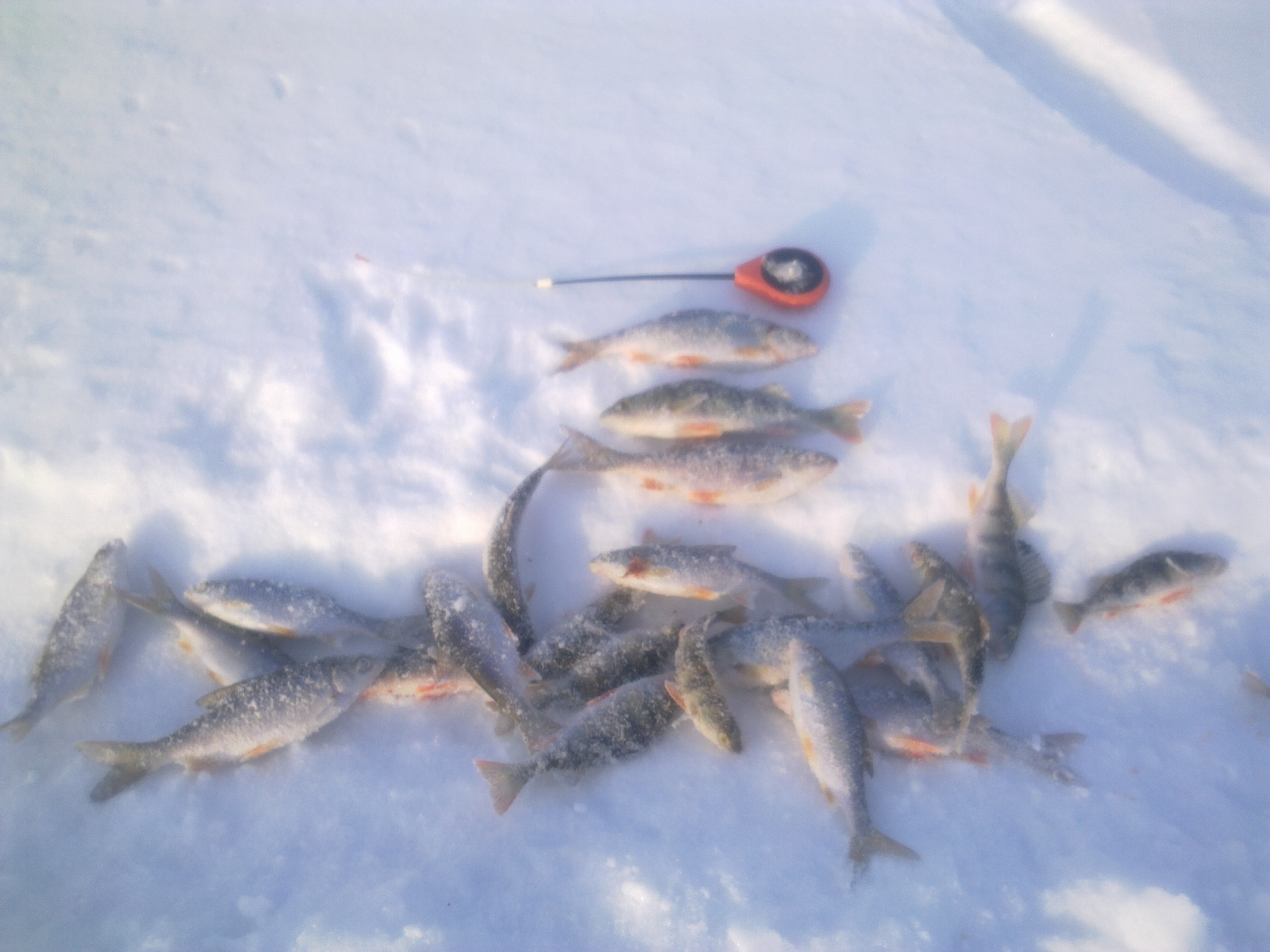 Вчера в количестве трех человек посетили любимое место.Погода просто классссссс. -18 , Солнце как на курорте, ветра нет, я за весь день даже варежки не одел. Плюс к этому и рыбка ловилась всякая. В общем отдохнули отлично. И местному рекету не дали умереть голодной смертью. Подробности на фото.