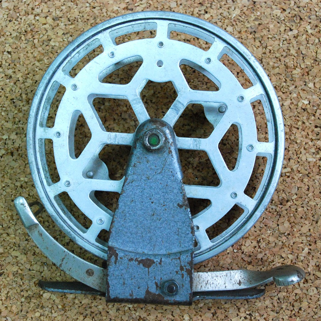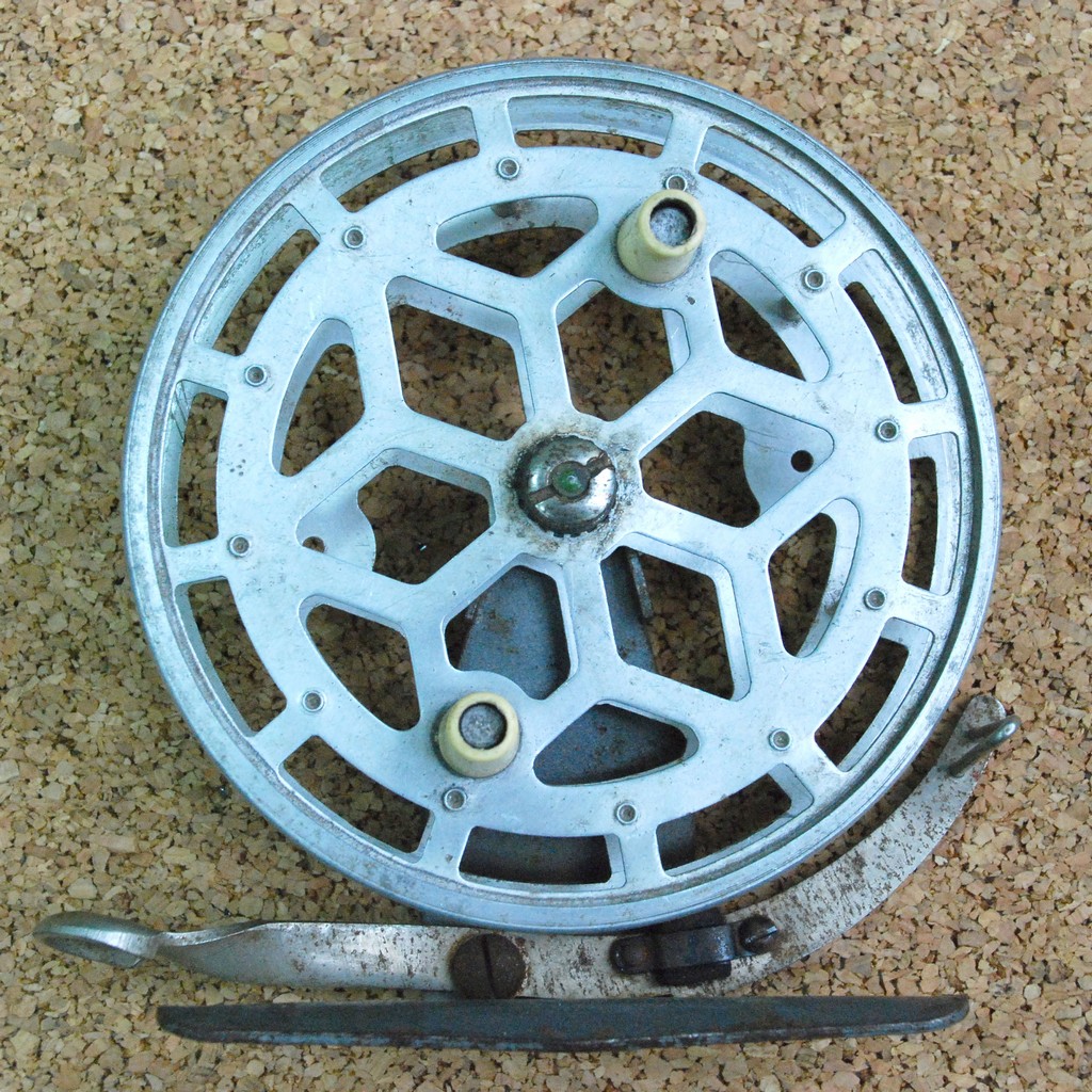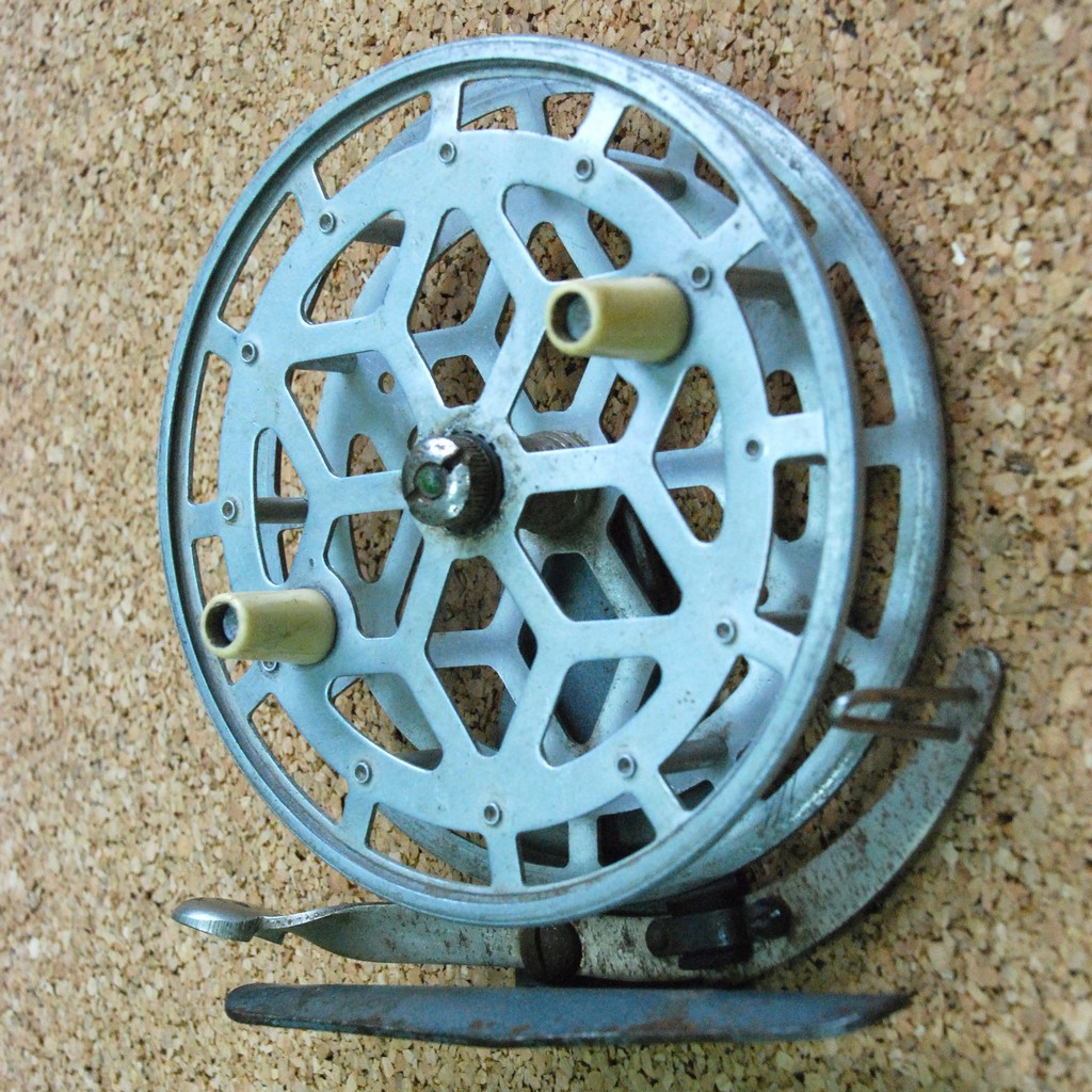 Проводочная- для ловли в проводку. Хотя, обычно, проводочные меньшего диаметра. Именно такой конструкции я тоже больше на встречал. Немного уточню. У катушки нет трещотки и глухого тормоза, есть только фрикционный – рычаг с кожаной вставкой. Кстати, очень неудобный: мешался при забросе блесны, приходилось подсовывать под него мизинец, чтобы не притормаживал. Больно! Потом догадался вставить деревянный клин. Но при ловле в проводку (при стравливании лески по течению) тормоз мог быть и удобен, хотя, мне кажется, большим пальцем удобнее.