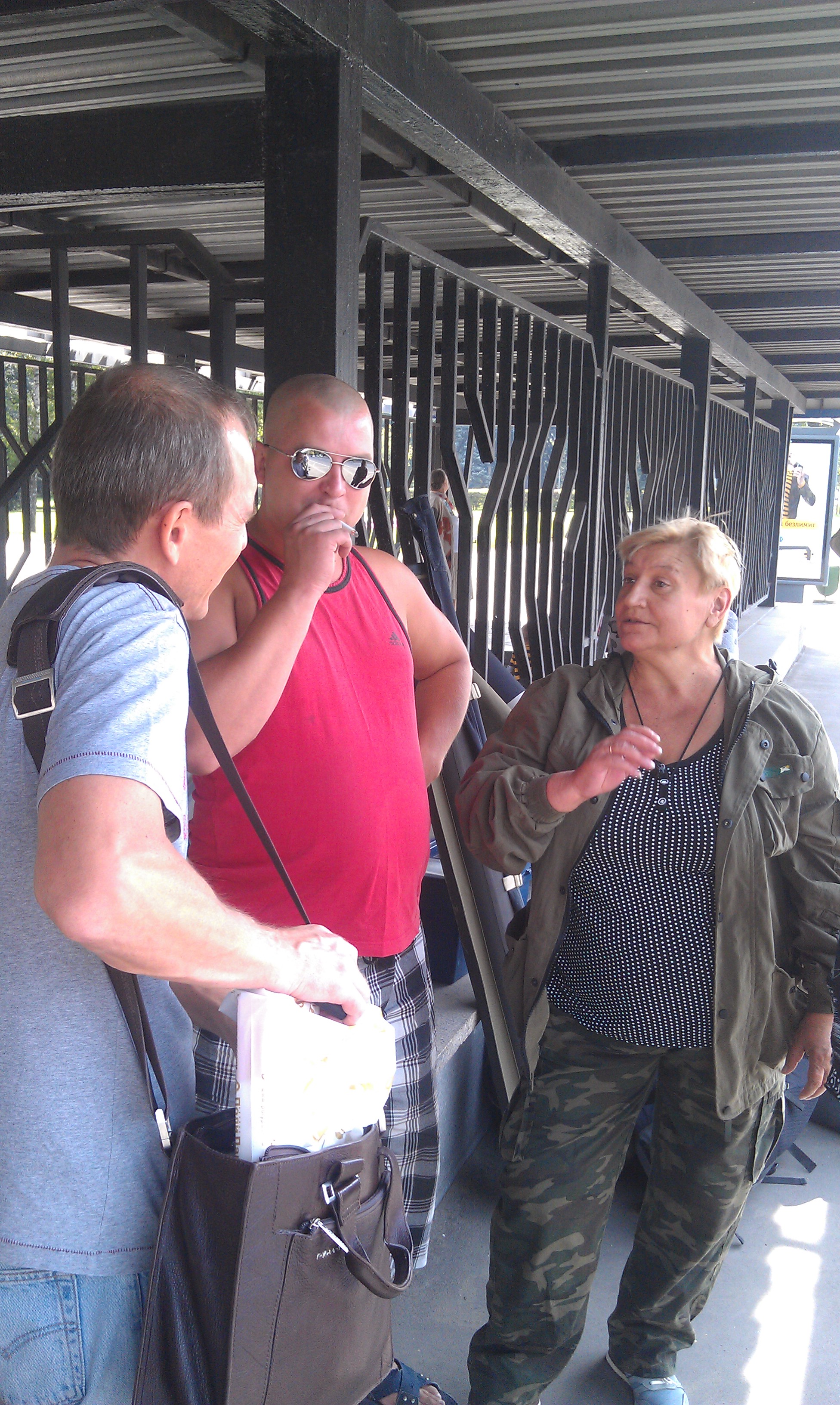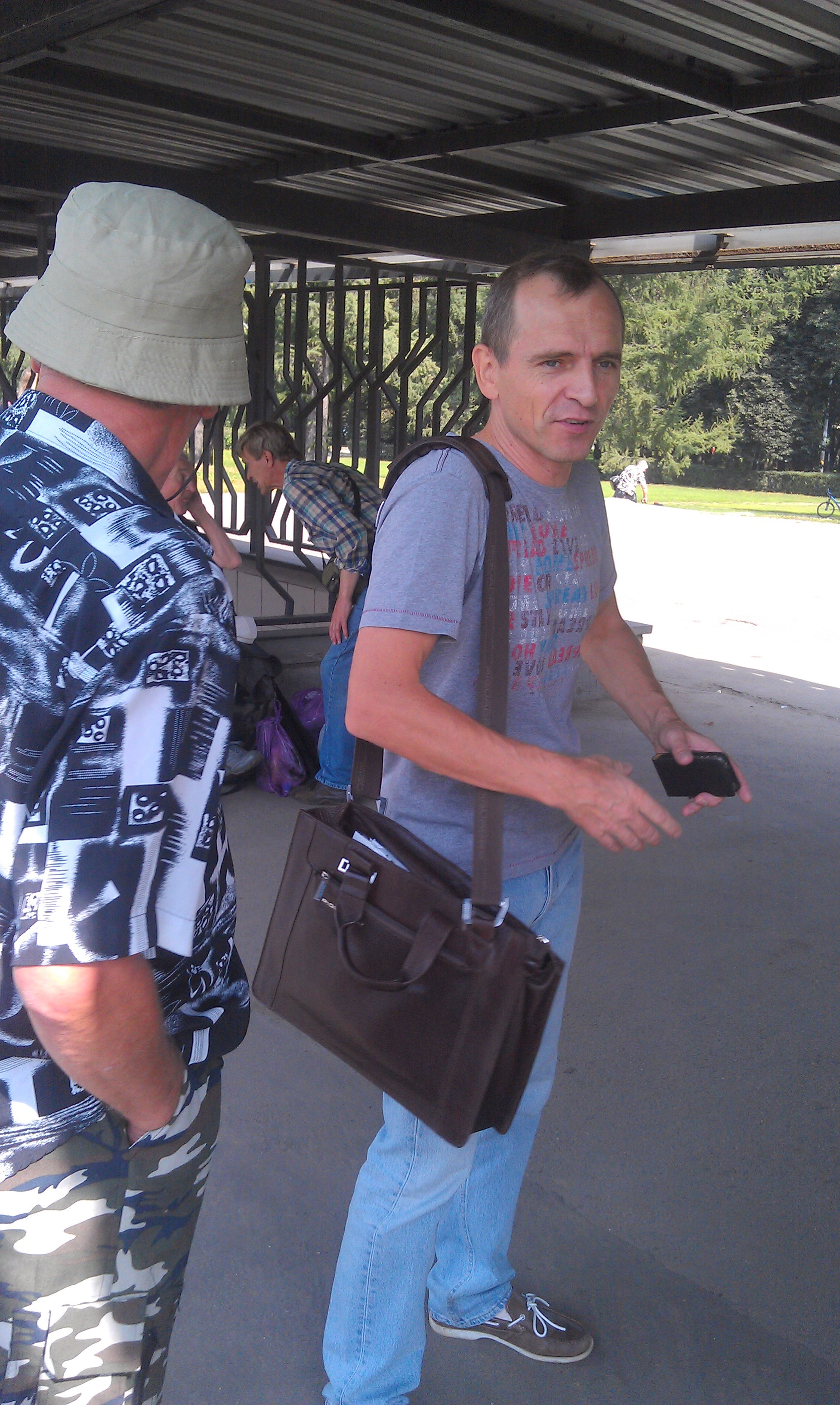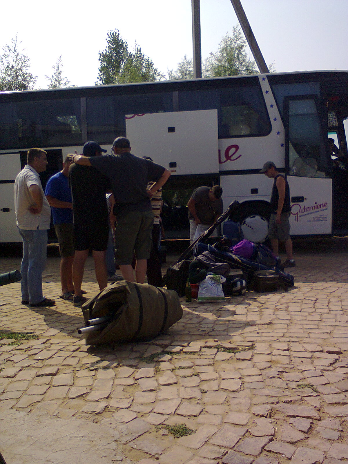 Отправили очередную партию счастливцев. К сожалению, их оказалось не так много. Провожающих, естестно, больше. Лёша,как всегда появился с приходом автобуса.Попытка отправить в НЯ "рыбачку". Опять предлагали скрутить скочем. Загрузка,передача "контрабанды" (с надписью "не пить"), а как же -"за отъезд"? Не организовано...Пришлось организовываться у Бена - "ЗА РЫБАЛКУ!"