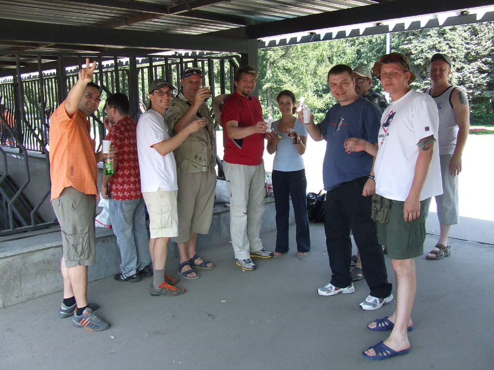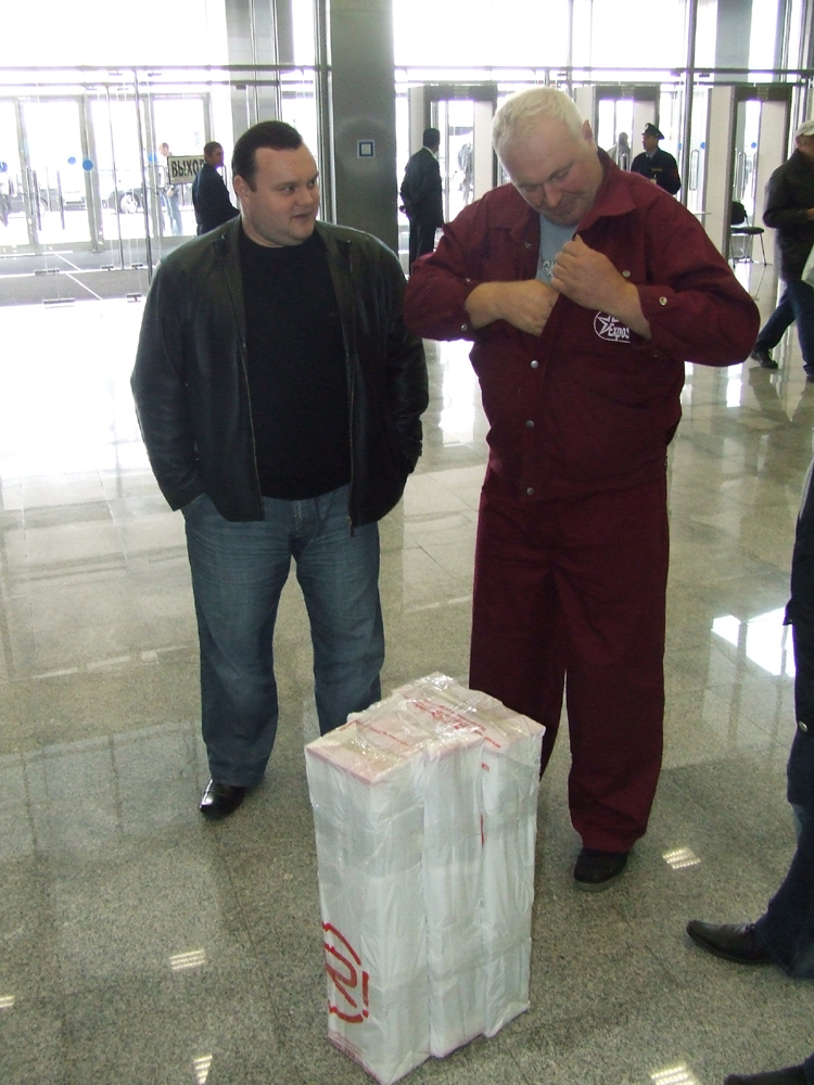 Выставка была на редкость хиленькой и простенькой, даже по сравнению с прошлым годом... Фото на фоне банера - почти ритуал, по списку Форкас (Дима), Ваш покорный, Мара (Марат), Маляй (Дима), Цыган (Паша). Хороша команда для поездки...