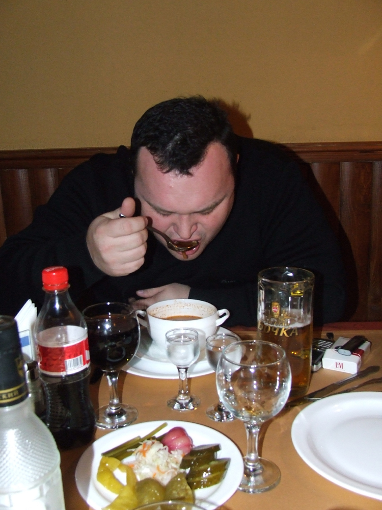 Поехали в кафе, где и поели харчо, всякую другую еду и выпивку.