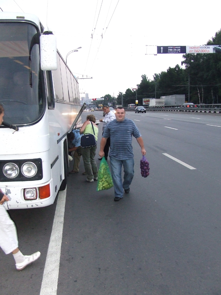 Свершилось - встречаем Лёву с женой и всех, кто приехал с ПЩВ! Автобус пришёл на удивление рано - за что я от жены выслушал - а ты так рано никогда не приезжал...