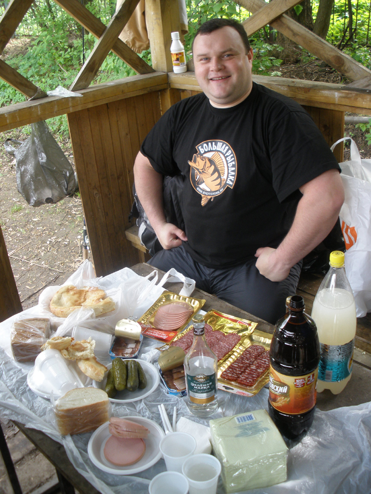 Праздник шёл своим чередом... У меня, переодически отнимали спин и тянули за стол - я не сопротивлялся! Шашлычёк, огурчики, лавашик и многие другие закусочки... Под водочку... Эх, хорошо посидели! Резюме! Хорошая встреча! Хорошие люди! Отличная компания! Отличный повод! Отличная рыбалка - у меня!!! Наверное и рыба вкусная.... Скорее бы снова День рождения....