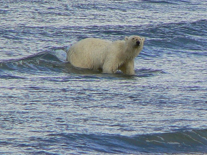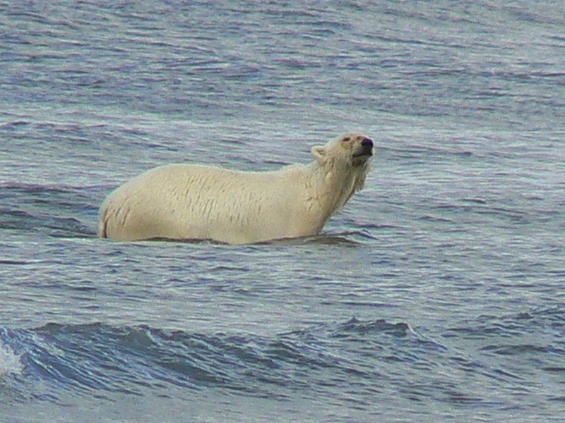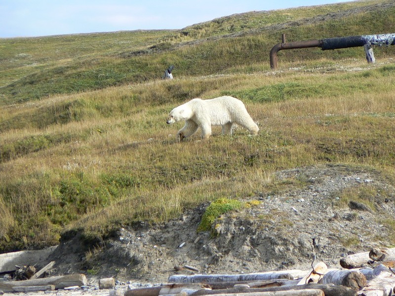 Бурые там не ходят, а с белым в посёлке и окрестностях вероятность очень большая. На Южной их нет... На пулах Талатояхи, только если на морской яме..... Это в 5 километрах от лагеря.... Но вероятность всё же есть...