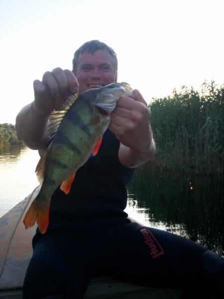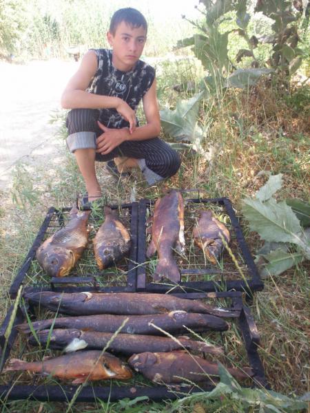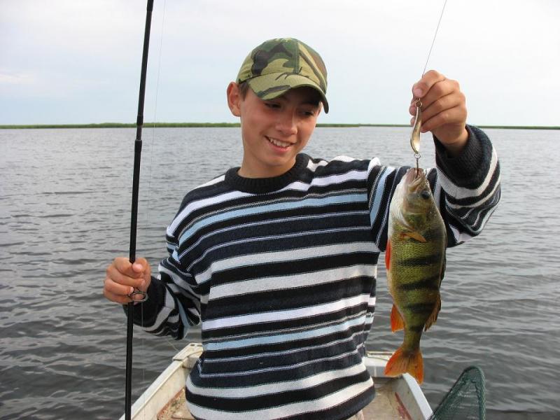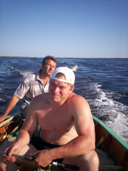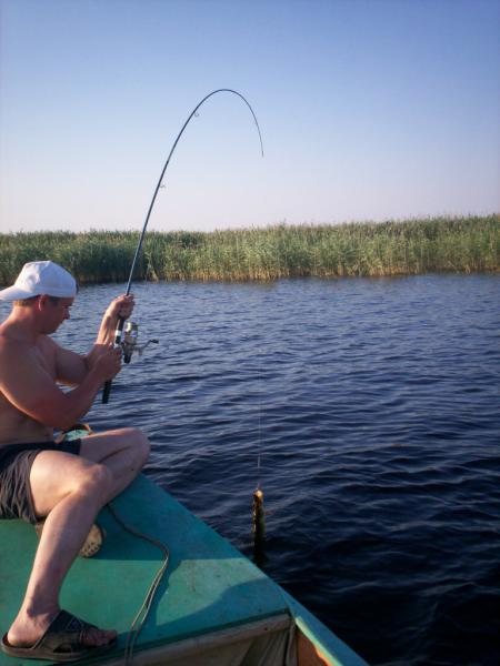 Востановленный отчёт Айвенго. Леха и первые трофеи Утро на 11-ой жилке, сомики то тут то там, в непосредственной близости от нашего куласа разрезают хвостами водную гладь. Кормушка забита и опущена на дно, Леха подсекает, - есть, хорошо взяло, так щас я его… пыхтя Леха крутит катушку, спиннинг клюет носом к воде, выводит не церемонясь на пролом, и не проходит и минуты, как первый соменок уже в лодке. Контрольная фотка и Лехина фигура снова застыла в ожидании поклевки сазана. Размашистая подсечка разрезает воздух, есть…, нет, сошло. Снова недолгая пауза, тишина, есть, Леха вскакивает, начинает орать, - только не за кормушку, нет не в коряги, что то тяжело ходит в глубине сгибая мощное удилище. Подсачек, где подсачек, нет, все-таки завел за кормушку, да поднимай же скорее, так, так, вот теперь давай… пару минут паники, беганья по всему куласу и бронзовый красавец на 7-8 килограмм переваливается в лодку. Вот это рыбалка, не успели приехать, привязаться за ветлу и пошло, а ведь на клев то опоздали, время уже к 9-ти…, ничего еще будет время. У Сашки Коломийца тоже клюет соменок, уже все обрыбились, а на спиннинг тишина, судак еще не зашел или уже ушел, сомята и сазан явно предпочитают ракушку и не обращают на наши джиги никакого внимания. На ряду с повсеместными всплесками сомят начинает играть жерех, меняю джиг на колебалку и небольшой жерешок под кило становиться первым моим сегодняшним трофеем. Леха тем временем снова сечет, спиннинг клют носом и застывает, поднять его у Лехи не получается, вот это сом… видать конкретный, все нет, сошел зараза, ворчит Леха, а Коломиец вытаскивает еще одного небольшого соменка. Еще несколько не реализованных сазаньих поклевок у Лехи и все снимаемся. Так хочется везде успеть, переезжаем в надежде половить на спиннинг на джиг немного ниже, привязываемся. Сашка Коломиец на спиннинг ловит в первый раз на джиг, он больше любит поплавок, но вот у меня следует долгожданная поклевка, сердце радостно трепещет, есть, первая щучка, да не плохая на пару кило наверно, еще поклевка и небольшой шнурок отправляется подрастать. А вот и у Сашки Коломийца первый результат на джиг, да как скоро, аж сам удивляюсь, некоторые пока все поймут, как дно определять, как вести, а тут 15 минут и уже первая рыба, чудеса… Радость в глазах и Сашка с удвоенной энергией и уже с уверенностью в собственных силах продолжает джиговать и вознаграждается еще одной килограммовой бестией. Леха начинает скучать, видя что дела у нас идут не плохо, а спиннинга то у него нет, поэтому решаем проверить еще одно место замеченное по пути где поверхность была вся сплошь покрыта пузырями, но уже припекает и не задержавшись там на долго, сваливаем на базу обедать, по плану на вторую половину дня обследуем Мечетный у самой базы, говорят в него сейчас рыба зашла, ну что ж проверим. Спиннинг рывками рвется из рук, здоровый окунище заглотил крупную колебалку по самые жабры и не намерен сдаваться без боя, перевалить в лодку такого красавца без подсачека дело непростое, легкий спиннинг угрожающе гнется дугой. Следующий заброс и уже удар с потяжкой, килограммовая щучка танцуя на хвосте ходит вокруг лодки, яростно тряся головой. Это первый день на базе «Лазурь», ехать сейчас в июле далеко не надо, ловим прямо здесь в Мечетном. Только вчера приехали, я с Рустиком младшим братишкой жены 