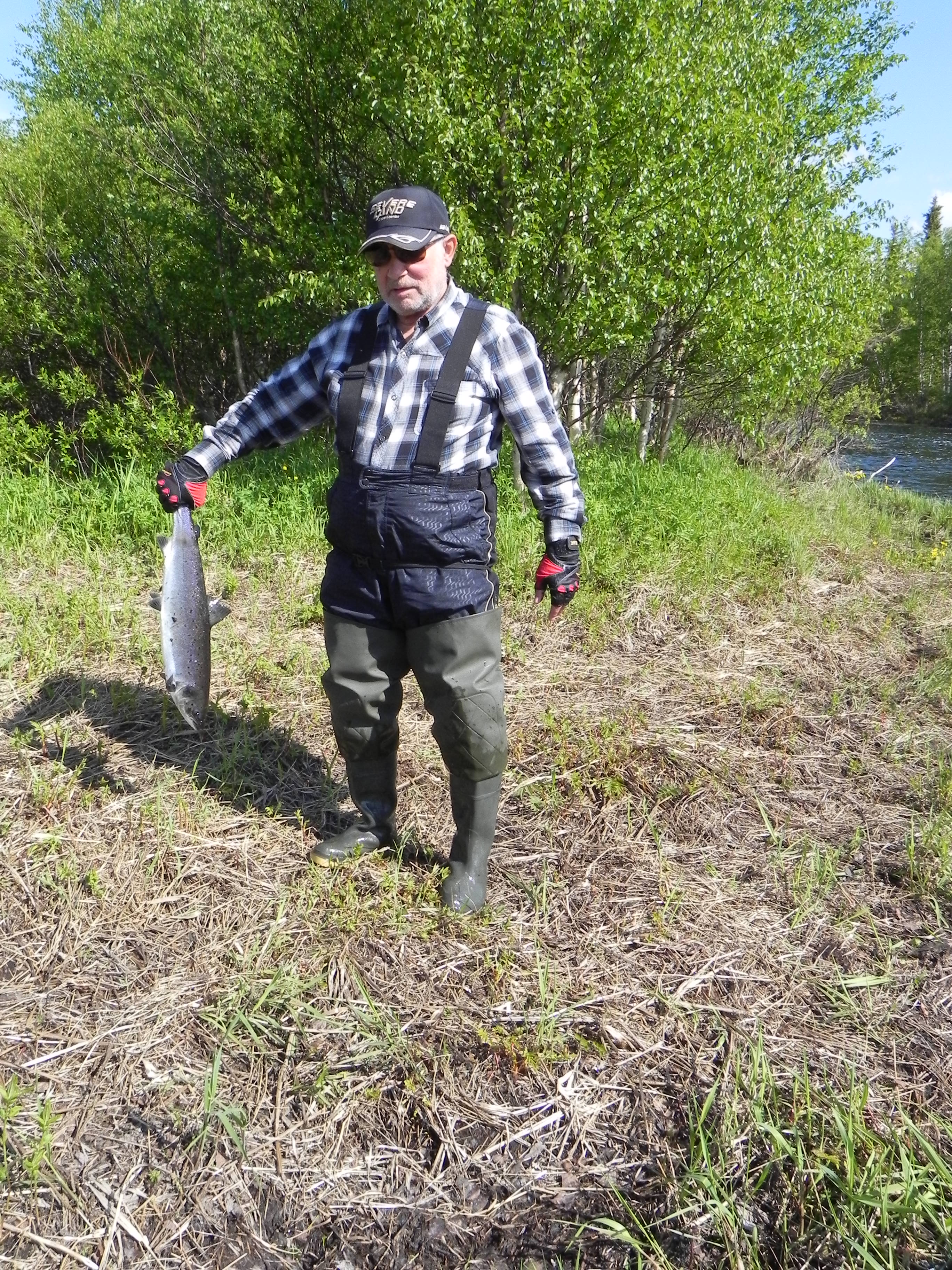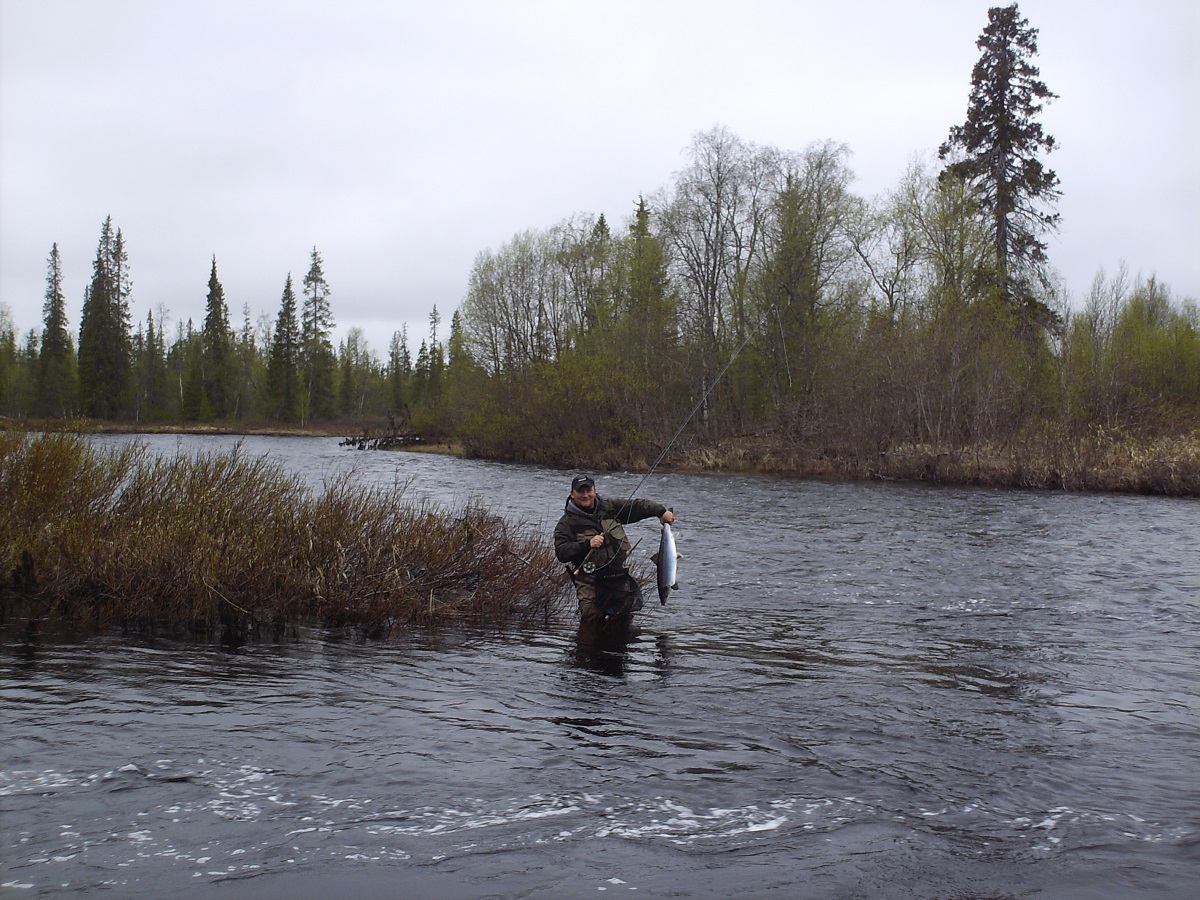 После обеда отправляемся вверх по реке на 1 км и ловим еще 2 семги.