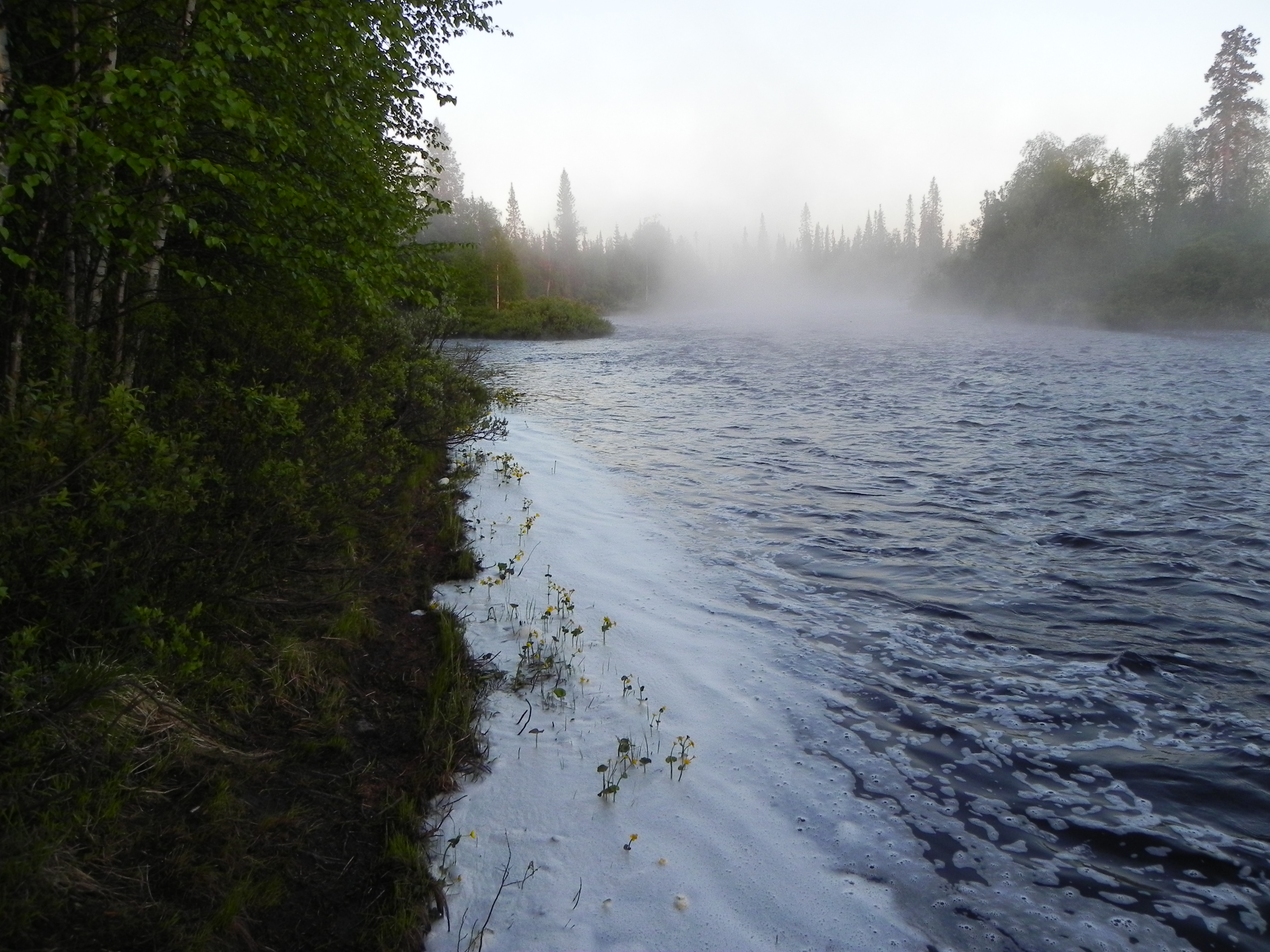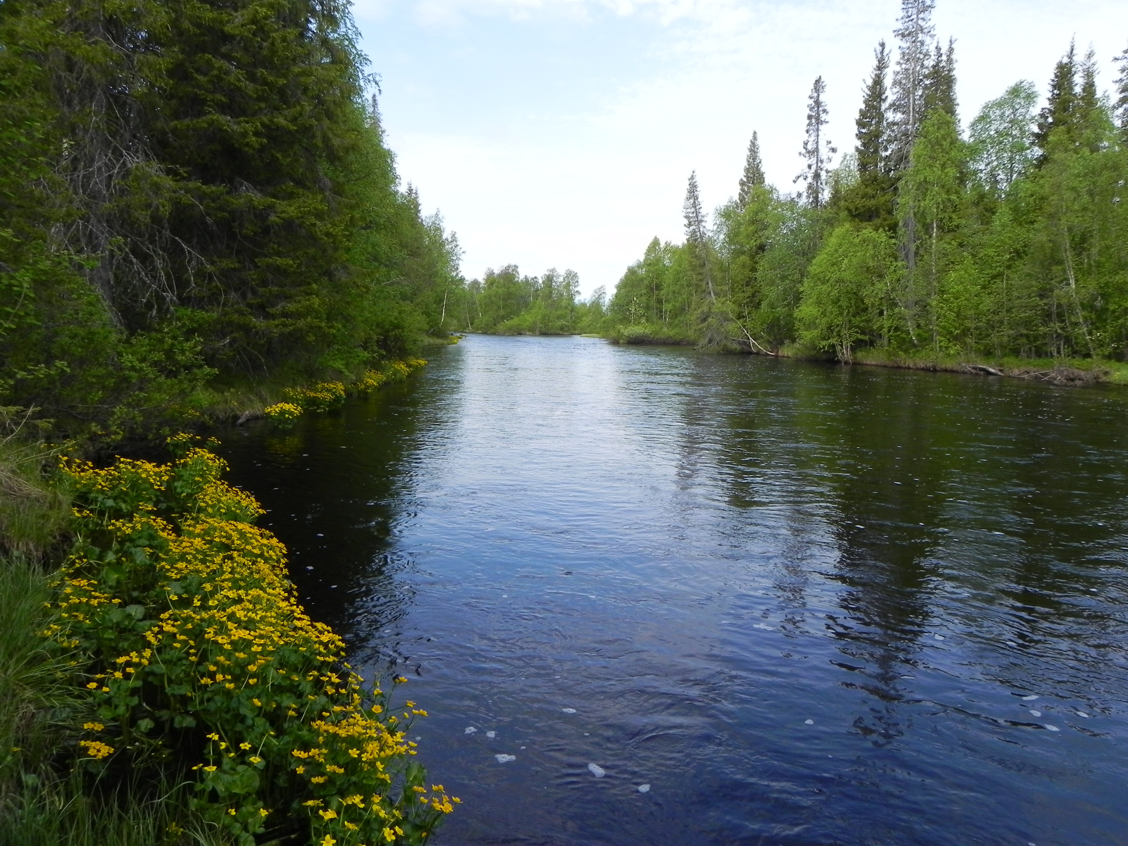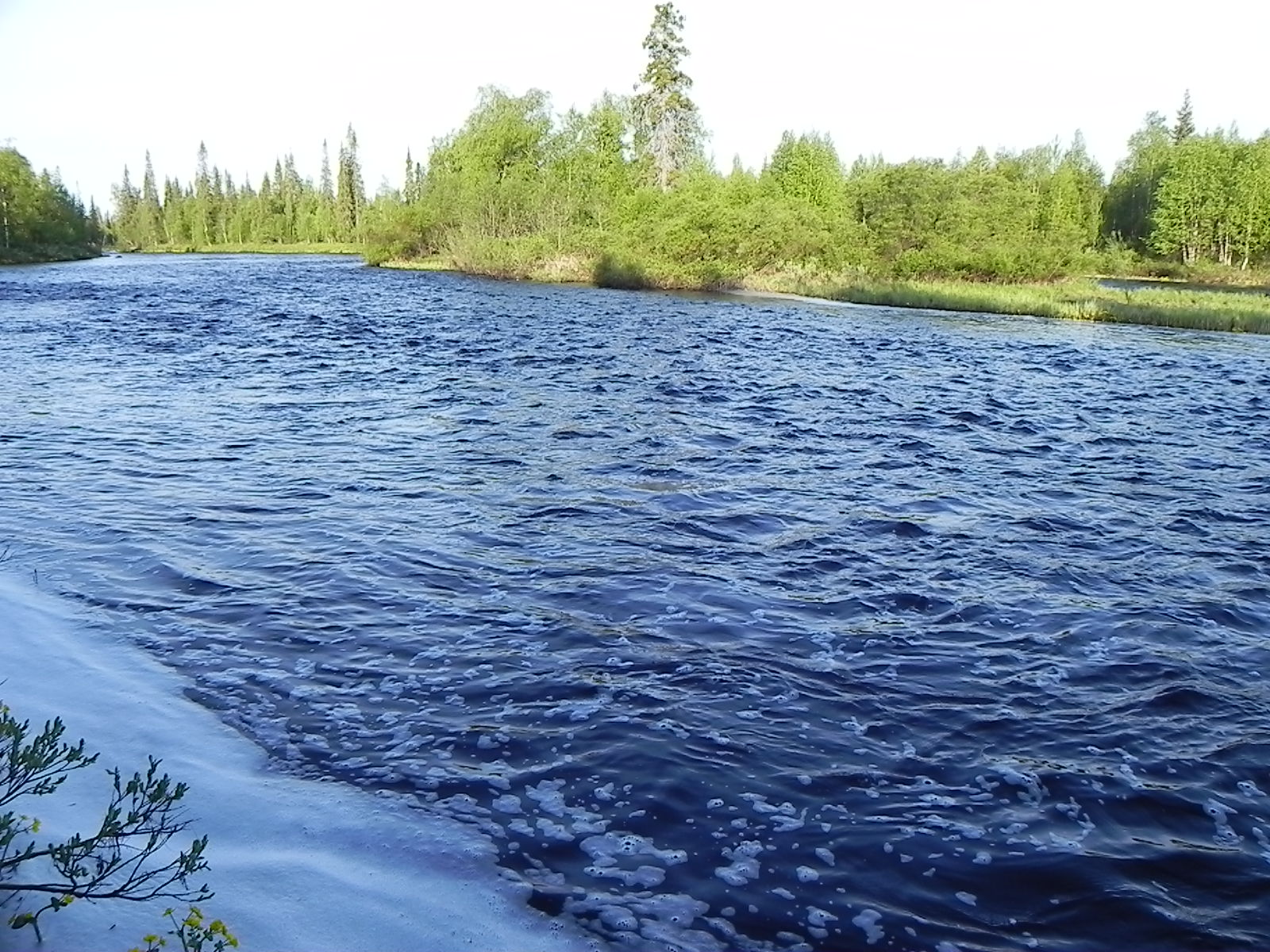 Томеньга, понедельник 09.06.14. Вода в Инделе высокая, семга мало активна, прыжки рыбы не наблюдаются. Прохладно, ветерок, зато нет мошки и камаров.
