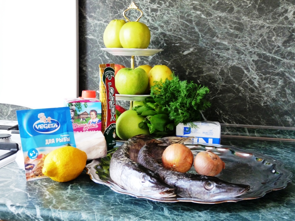 Щука под яблочным соусом. Как и когда попался мне на глаза этот рецепт уже не помню. Только запало в голове... щука, сало, яблоко, горчица и почему то щавель! Собравшись с мыслями, решил приготовить... Для приготовления этого блюда понадобятся: Щука, сало, щавель(пучок), укроп(пучок), яблоко - 1 шт, лук репчатый, горчица- 1 ст. ложка, сливки 150 гр., лимон, специи, масло. Разделанную щуку режем на кусочки, поливаем соком лимона, специями и оставляем ненадолго мариноваться. Сало режем небольшими брусочками, по размеру кусков рыбы. Во внутрь кусочков рыбы положить сало и листик щавеля и завернуть рулетиком, закрепив зубочисткой. Рулетики отправляем на сковородку и жарим до готовности. Для приготовления соуса мелкими кубиками нарезаем очищенное яблоко, лук и тушим на сливочном масле минут 6 - 8. Добавляем сливки, горчицу, соль, щавель, укроп и доводим до кипения. Готовым соусом поливаем нашу рыбу.