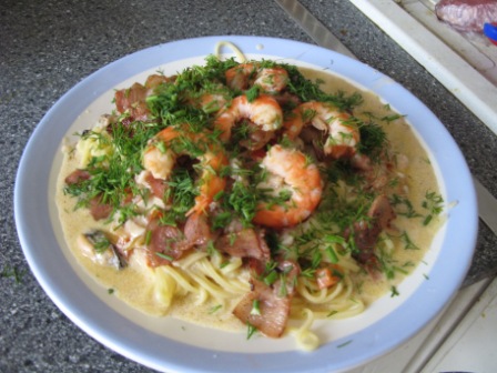 Макароны с дарами моря в сливочно-сырном соусе. Породбно тут http://www.bigfishing.ru/board/showthread.php?p=17407#post17407