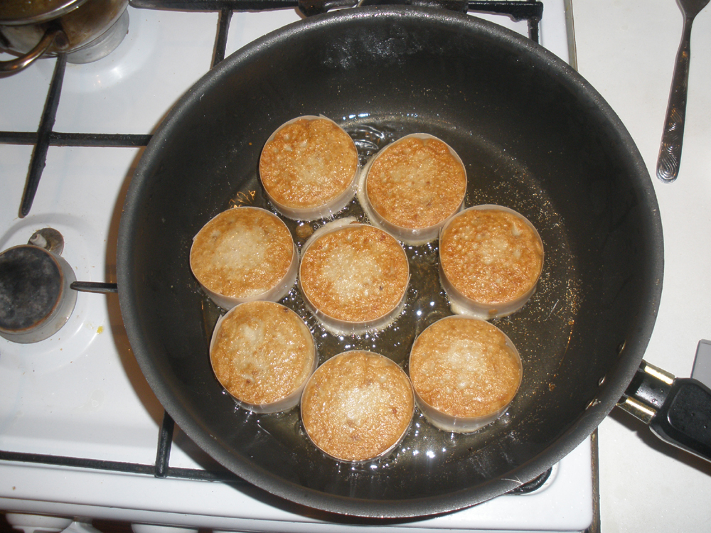 Молоки лососёвые... Молоки - обожаю! И семья моя лупит... Готовлю - разморозил, обвалял в муке, обжарил в масле... И зашибись... Но как повара, мелкого пошиба, раздражало, что в размороженом брикете были и целые ястыки и масса мелких кусочков! Вот с ними возьни... Решил процесс упростить! Молоки в миксер или блендер! Взбиваем! На килограмм молок - 2 яйца и немного муки. Соль и специи по вкусу! Ну мешать вам должны! Теперь займёмся оригами! Нарезаем полоски из ватмана - высота 20 мм. Скрепляем их степлером и набрасываем их в сковороду с разогретым маслом... Можно жарить только их, но будет не вкусно... В кольца - массу!!! Накладывать не до верху! Обжариваем с одной стороны, потом с другой! Дурацкие бумажки - можно потом снять! Получилось оч вкусно! Пришедшая с работы жена - с удовольствием съела!!!! А Вы так жену встречаете??? Приятного аппетита!!!