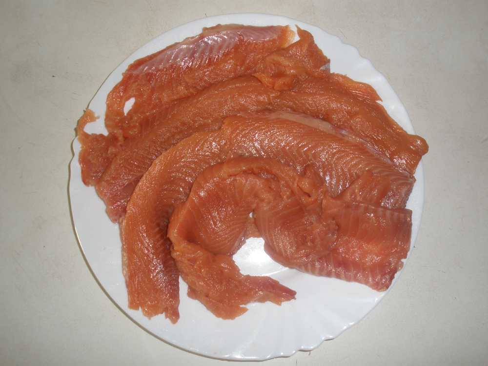 Форель малосольная, пикантная. Как солить красную рыбу - знают все! Рецепт в общем то один (соль+сахар), с небольшими дополнениями в виде бренди или коньяка, зелени или лимона. Мой способ не отличается особыми изысками, просто решился на очередной эксперимент! Как то недавно посоветовали при приготовлении с/с форели или сёмги в домашних условиях, добавить апельсин! Итак: Форель (осетинский монстр с Тимки 1 кг. 800 гр.), соль 4 ст.ложки, 2 ст. ложки сахара, 1 апельсин (у меня был красный). Рыбу разделываем добавляем все ингредиенты и оставляем на 36 часов в холодильнике. Мне понравилось...