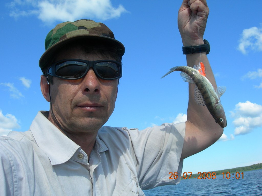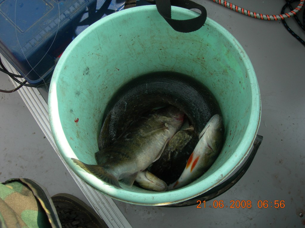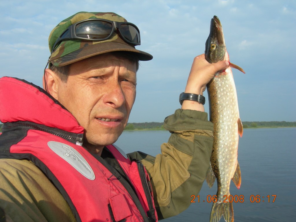 Сегодня поехал один, и маневриность у меня была хорошая.Сначало половил на проходе к дебаркадеру.Щучка поймалось и пару окуней, потом даж судачек поймался-первый в это лето!Клев утих и я на глиссе ушел к Низовке, там на окуневом месте поймал штук 5 неплохих окуней..и как то к 11 часам, клевать перестало..Менял места , но без результатно,польза от этого, то , что я на глиссе летал...После двух часов дня ,встал на место..и пошел клев судачка, 4 штуки хорошенькие, остальные небольшие, мелких пару отпустил..Ловил на джиг -головку и на светло-зеленый твистер с блестками, небольшой твистерочек, см 5 .Очень интересно судачка половить, бывает так врежет в спин, чуть ли не вылетает.Брал взаглот..А мож я очень опытнай, правильно подсекал...Вся рыбка выловлена без подсака, не беру его.Погода была классная. чуток подгарел.Мужикам показывал куда кидать , у них не брал судачек, при поклевке оборвал твистера, и клев закончился, на другие цвета чет не реагировал клыкастик.В 17 вечера полетел на стоянку, довольный сегодняшней рыбалкой!Все джиги были на поводках из моно лески...