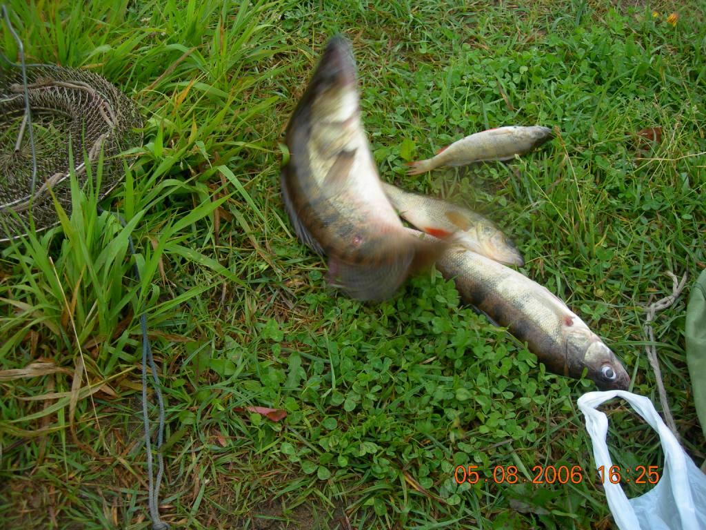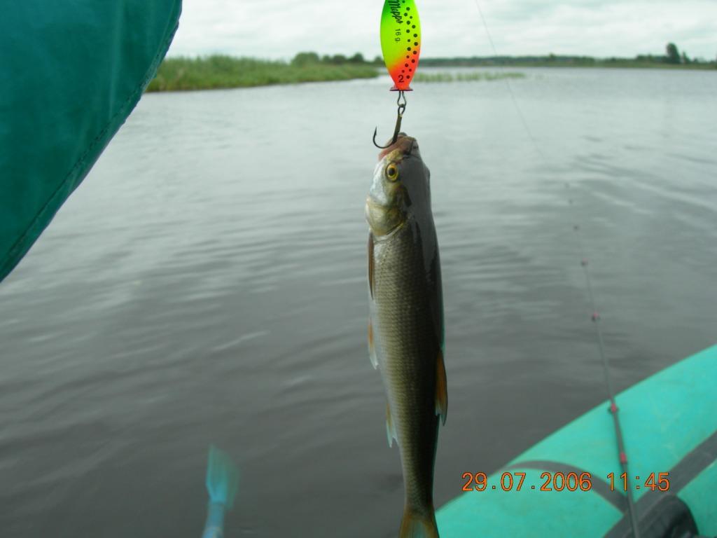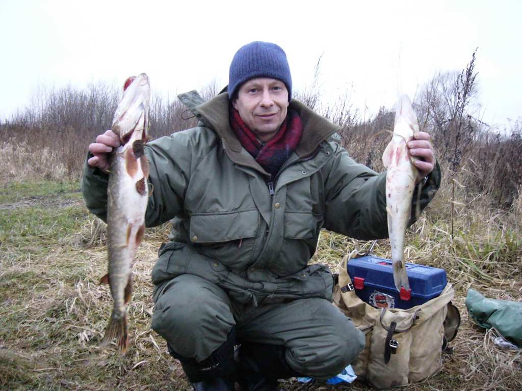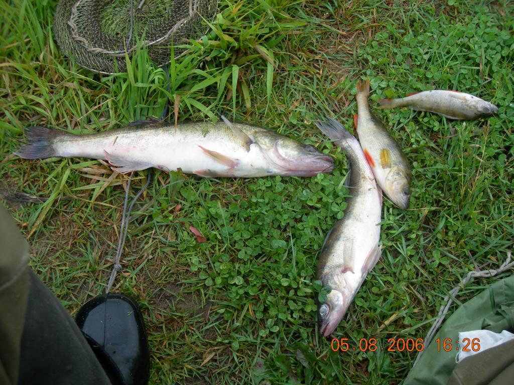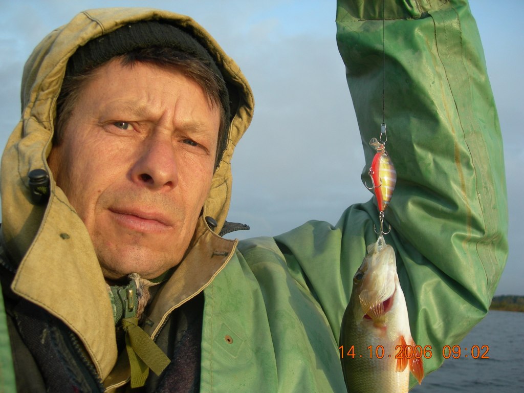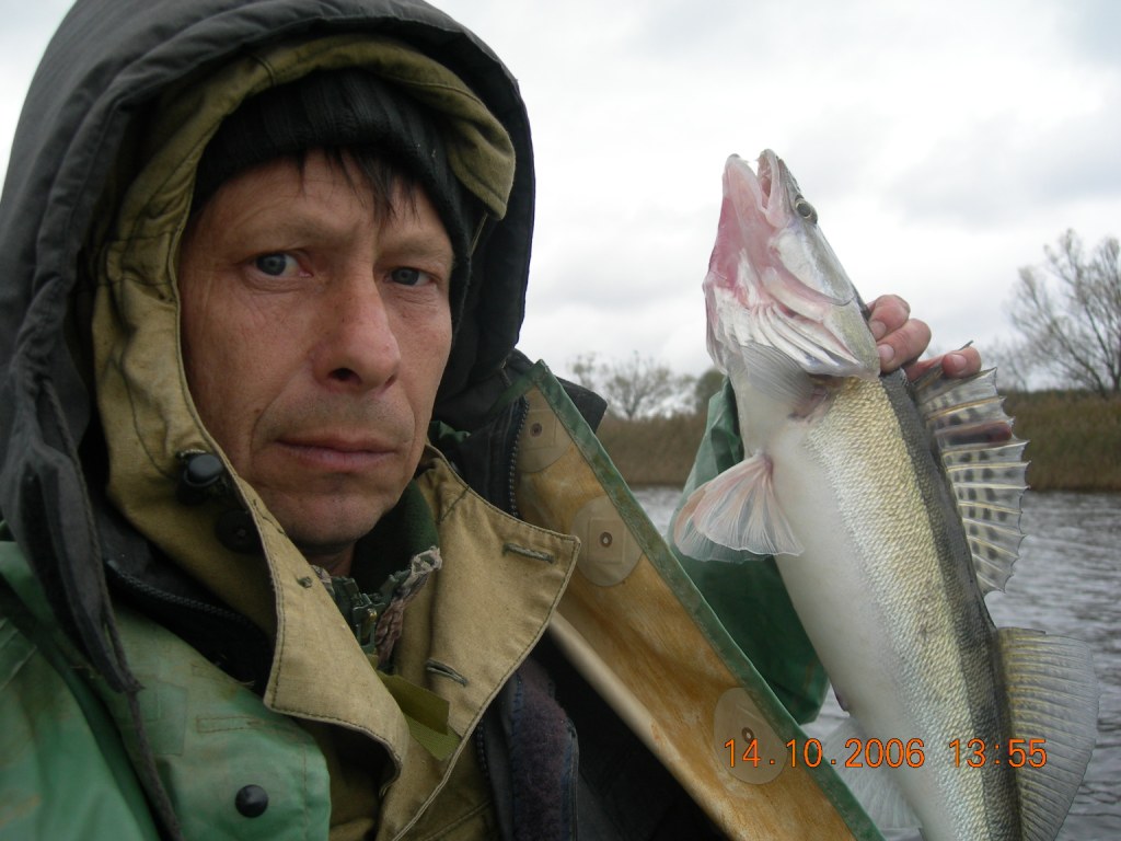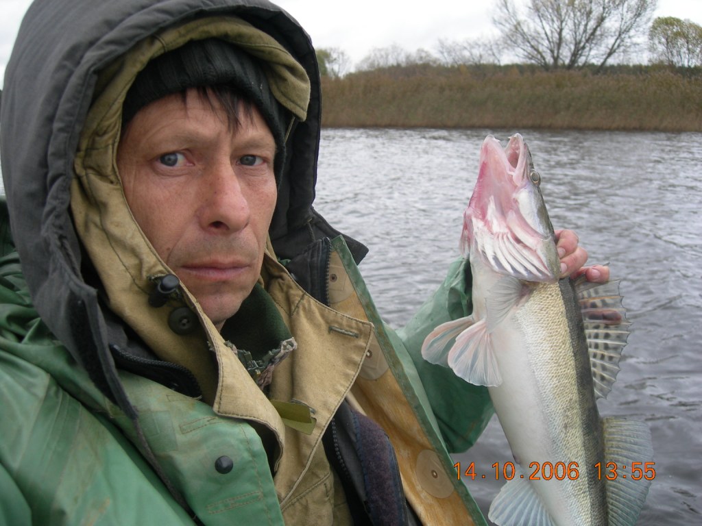 Дождь В субботу снова поехал на рыбалку.По сведениям метеорологов погода должна быть: хорошая, плохая, средняя,и какая вам нравится.Утром, посмотрел в окно, вроде сухо.Стал выходить в подъезд-пошел родимый.Я аж домой обратно вернулся, глянул в окно, капает.Подумал, что все равно мне больше не уснуть, да и тепло на улице, побежал на остановку.Поехал на Волгу, он сильно капает.На стоянку одновременно подъехал корешь Сергей.Он себе поставил задачу:жерлицы и кружки, ну и немного половить на спин.А у меня одна задача до зимы -спин.Конечно на неделю отвлекусь и на удочку, чтоб Володе Баракову немного снизить уловы язя и прочей нехищной рыбы С Сергеем мы поболтали, помечтали перед отплытием.Как в прошлые выходные , малек совсем не гулял.Было одно чавканье окуня,но я его прекратил, бросив в это место поппер и вытащил окушка, чуть больше моего самодельного поппера.На вертушки не брало.Следущая задача у меня -судачек.Я его чувствовал , он где то должен быть, в речке.Начал обстукивать дно, поставил белый виброхвост и случилася резкий удар, подсечка и вот он -первый в этом сезоне, правда небольшой, но очень желанный.Он есть на фото.Потом тишина, обловил свои места разными блеснами, глухо.Дождь идет, то сильнее , то тише.Но с нашими гидро плащами типа ОЗК ни какой дождь не страшен.И я думаю этой защите нет альтернативы для простых рыбаков.Читал отзывы о навороченных костюмах-слабоваты они.Я конечно не буду говорить за все гидро костюмы, т.к. я их не испытывал.Вобщем до 15 часов глушняк., думал половлю еще пол часика и домой, но вот по спину прошли слабые толчки, подсечка и вот он красавчик.На 800 грамм потянул, пора домой.Серега поймал одну щучку и окуня на жерлицы.Прилагаю фото отчет.Да на одной фоте видно как судачек во время съемки подпрыгнул.