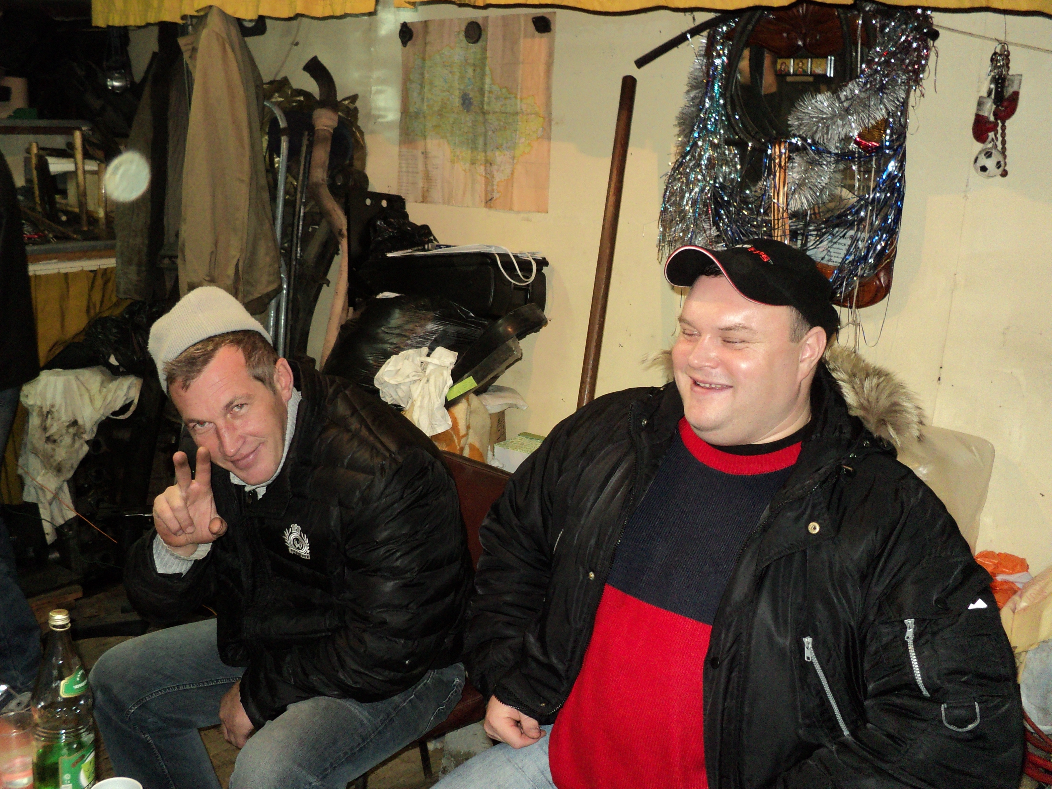 А у меня даже на палатку нет скинуться... Пустите погреться? У меня тоже!:bygaga: Мля - в наличии только рты и руки.... А я вроде как опять крайний! Возьму из дома картошки. Мне из Белорусии привезли, чтоб не голодал. Хлеба от-туда же. Лук есть белый из Астрахани. Водка только по 33 рубля есть. На другую не хватает...