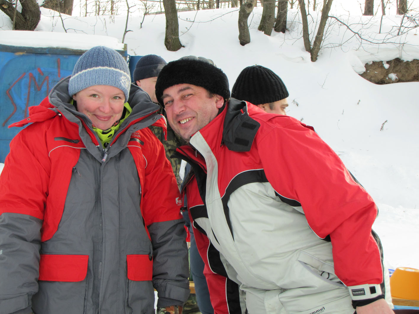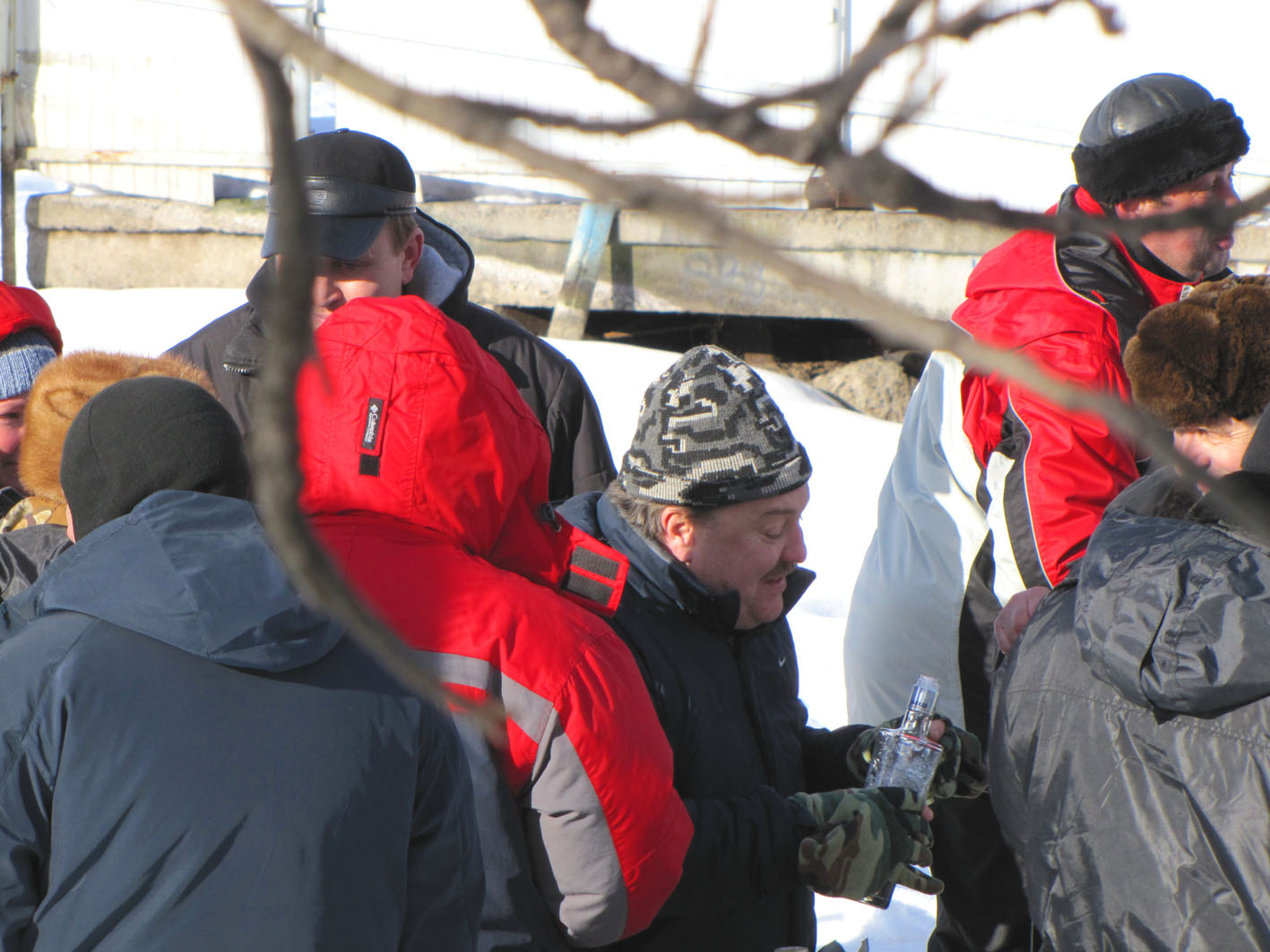 Паша Горро как обычно был с Ромой, но в этот раз Рома пил! Пил по взрослому! Закусывая опятками собственного приготовления (хорошие опятки, я вам скажу!). Вообще всяких разносолов на столе хватало, шашлыка было несколько видов, соленья... Прилетевший на снежике Бек, не успел выйти из-за руля уже кричал: "Налейте водки!". Дима Форкас не говорил... мешали сосульки, висевшие на бороде, бровях и ресницах!
